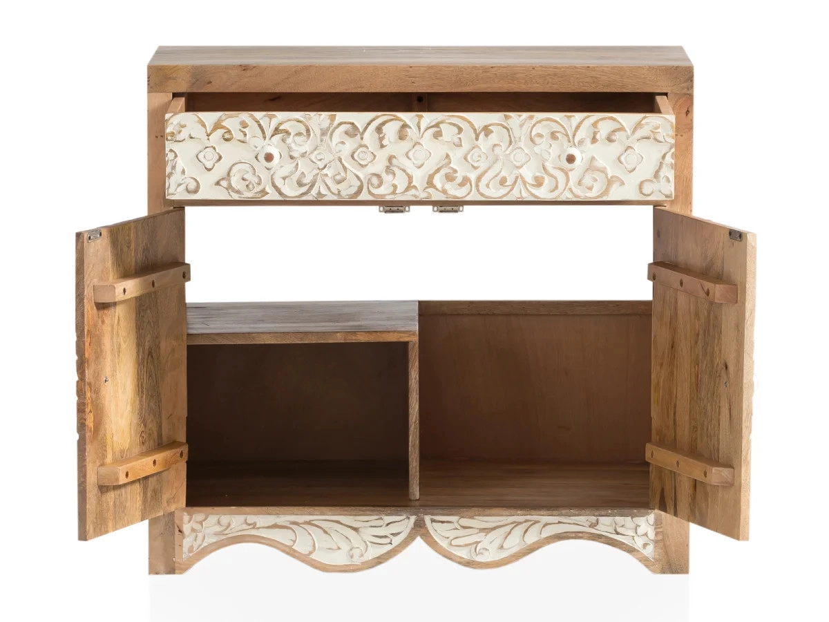 Masivní umyvadlová skříňka Delhi z mangového dřeva je dokonalým spojením funkčnosti a estetiky, které vnese do vaší koupelny nádech elegance a přírodního kouzla. Její hnědý lakovaný povrch zdůrazňuje unikátní texturu mangového dřeva, které je známé svou odolností a trvanlivostí. S rozměry 80 cm na šířku, 50 cm na hloubku a 75 cm na výšku se skříňka skvěle hodí i do menších prostorů, přičemž poskytuje dostatek úložného prostoru pro všechny nezbytnosti. Díky svému minimalistickému designu, který se snadno přizpůsobí různým stylům interiéru, od moderního až po rustikální, se stane dominantním prvkem vaší koupelny.
