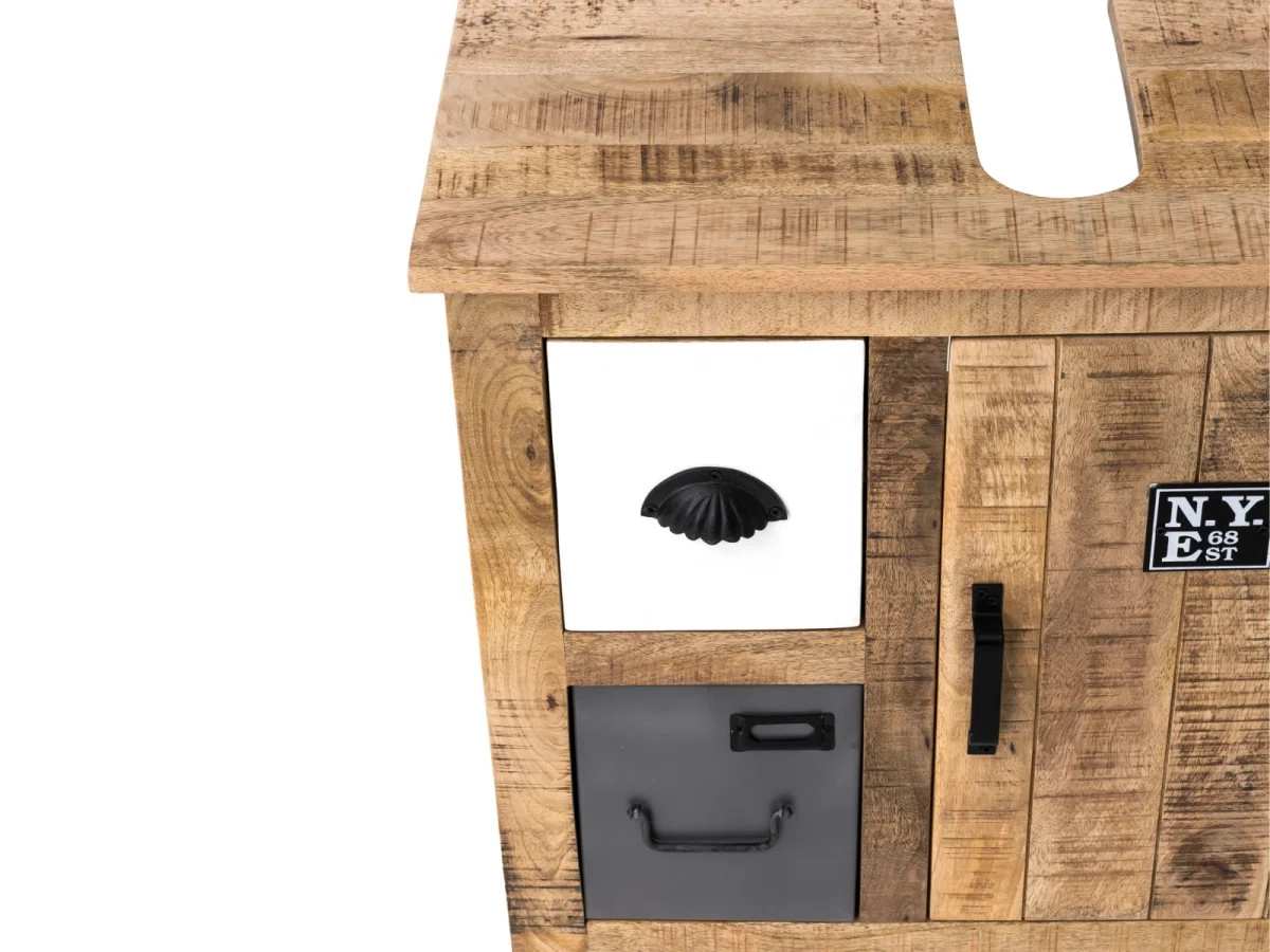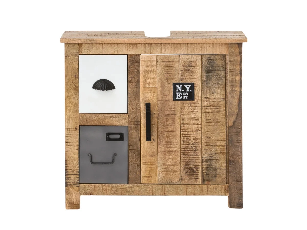Objevte kouzlo robustní umyvadlové skříňky Pune, vyrobené z kvalitního mangového dřeva s lakovaným povrchem, která dodá vaší koupelně jedinečný šarm. S jejími rozměry 68×30×63 cm a veselým vícebarevným designem přinese do vašeho prostoru nejen praktičnost, ale i půvabný vizuální prvek.