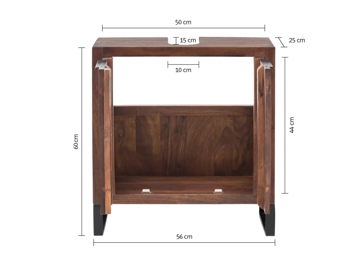Objevte eleganci a praktičnost v jednom s masivní skříňkou pod umyvadlo Sydney, vyrobenou z kvalitní lakované akácie v příjemném hnědém odstínu. Tato kompaktní skříňka o rozměrech 56×25×60 cm skvěle doplní vzhled vaší koupelny a nabídne dostatek prostoru pro vaše nezbytnosti.