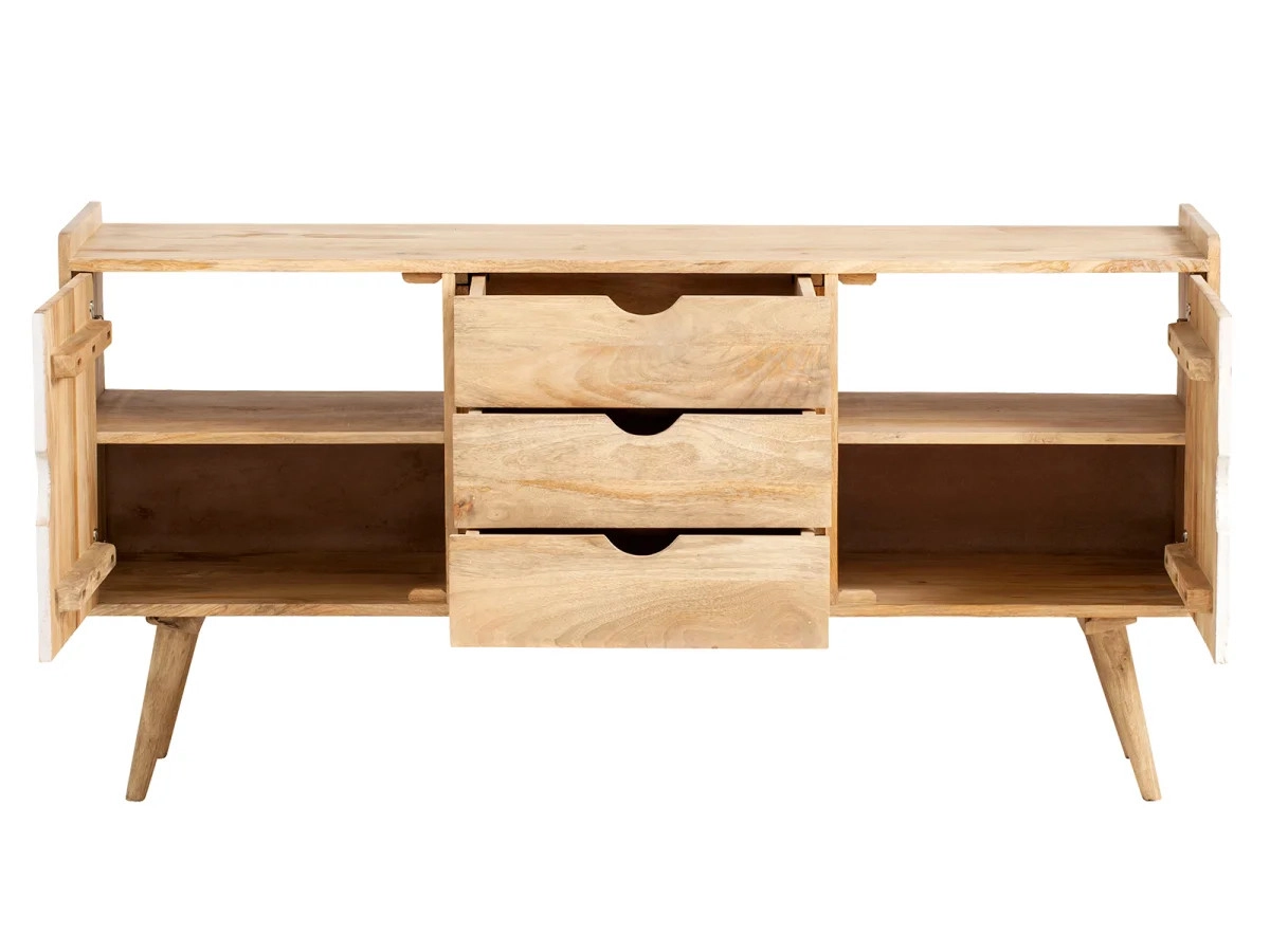 Objevte eleganci a praktičnost v jednom s masivní skříňkou pod umyvadlo Barani vyrobenou z kvalitního mangového dřeva. Tento lakovaný kousek v teplém hnědém odstínu dodá vaší koupelně nejen dostatek úložného prostoru, ale i šmrnc díky svým rozměrům 150×42×75 cm.