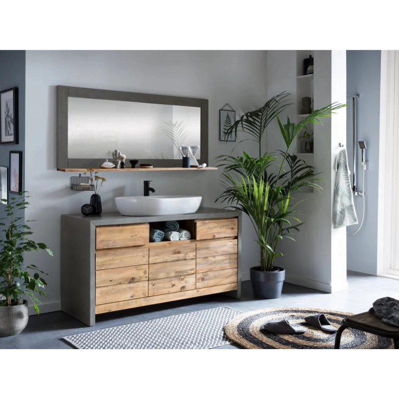 Zrcadlo Burnham II přináší do vaší koupelny nejen praktickou funkci, ale také jedinečný designový prvek, který dokáže proměnit jakýkoli prostor. Jeho obdélníkový tvar a rozměry 140×15×66 cm jej činí ideálním doplňkem pro moderní interiér, kde se elegance snoubí s funkčností. Vyrobeno z recyklované borovice, toto masivní zrcadlo vyniká svým přírodním vzhledem, který dodává nádech útulnosti a tepla. Lakovaný povrch zajišťuje odolnost vůči vlhkosti a snadnou údržbu, což je pro koupelnová zrcadla klíčové. Přírodní barva dřeva se skvěle hodí k různým stylům zařizování, od skandinávského minimalismu po rustikální kouzlo.
