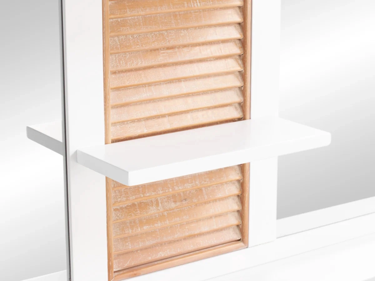 Masivní koupelnové zrcadlo Capera z borovice kombinuje elegantní bílou a teplou hnědou barvu s lakovaným povrchem pro dlouhotrvající krásu. Tento obdélníkový kousek, o rozměrech 140×70 cm, přináší do vaší koupelny přirozený šarm a svěží vzhled.