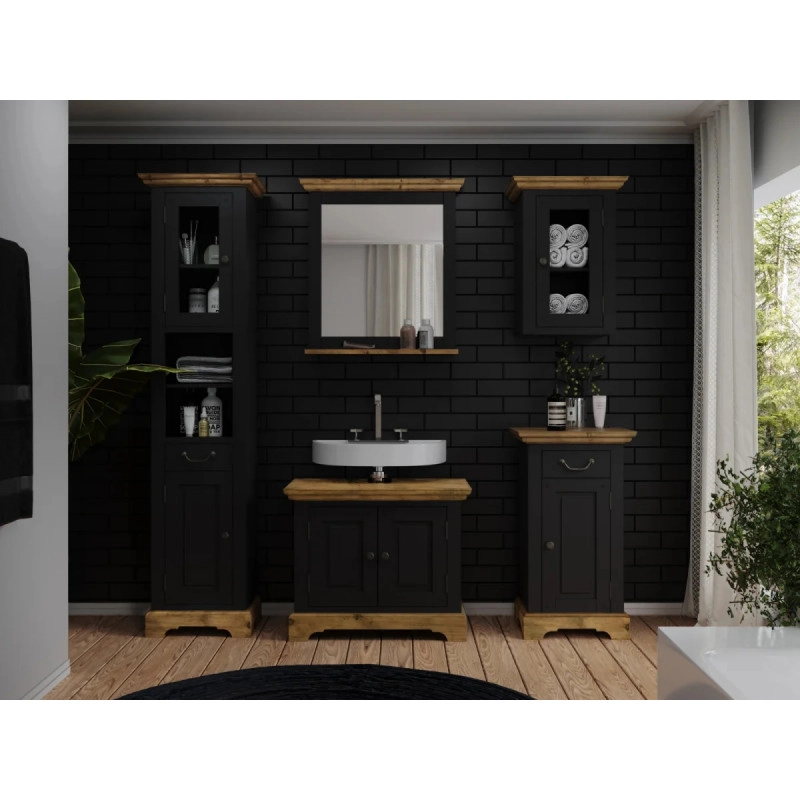 Hledáte zrcadlo, které nejenže promění vaši koupelnu, ale zároveň přinese nádech elegance a pevnosti? Masivní koupelnové zrcadlo Kenya z borovice a MDF je skvělou volbou, pokud toužíte po spojení přírodní krásy dřeva s moderním designem. Jeho obdélníkový tvar o rozměrech 73×15×78 cm nabízí dostatek prostoru pro pohodlné používání a zároveň působí jako výrazný designový prvek. Černý lakovaný povrch rámu dodává zrcadlu sofistikovaný charakter, který se dokonale snoubí s různými styly koupelen – od minimalistických po industriální nebo rustikální.
