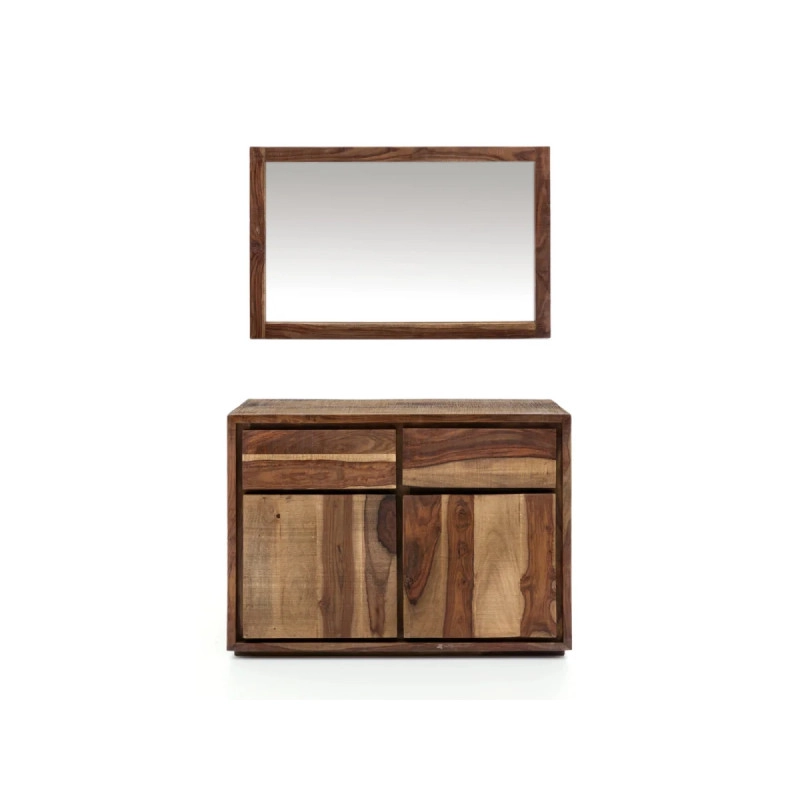 Entdecken Sie den Zauber des massiven Badezimmerspiegels Blackdale, gefertigt aus hochwertigem lackiertem Palisander in natürlicher Brauntone. Mit den Maßen 100×75 cm und rechteckiger Form verleiht er Ihrem Badezimmer Eleganz und Stil.