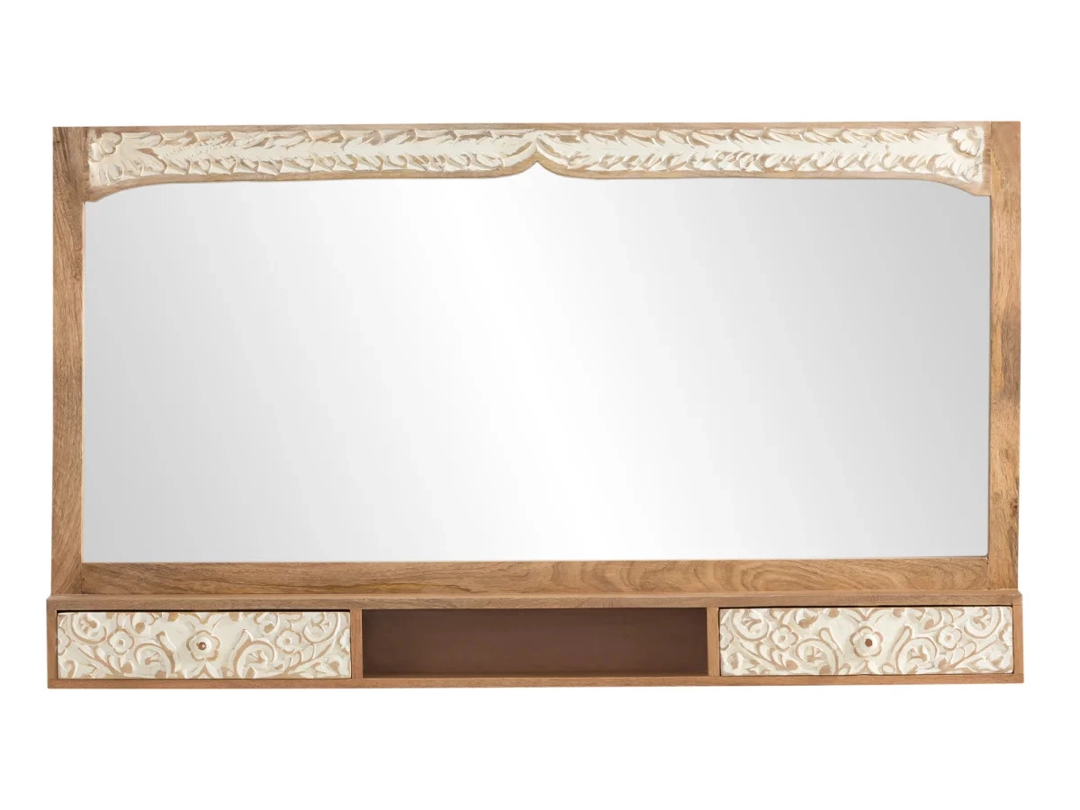Objevte kouzlo přírodní elegance s masivním koupelnovým zrcadlem Delhi, vyrobeným z kvalitního mangového dřeva. Jeho lakovaný hnědý povrch dodá vaší koupelně teplý a pohodlný vzhled, zatímco rozměry 130×75 cm poskytují dostatečnou velikost pro každodenní použití.