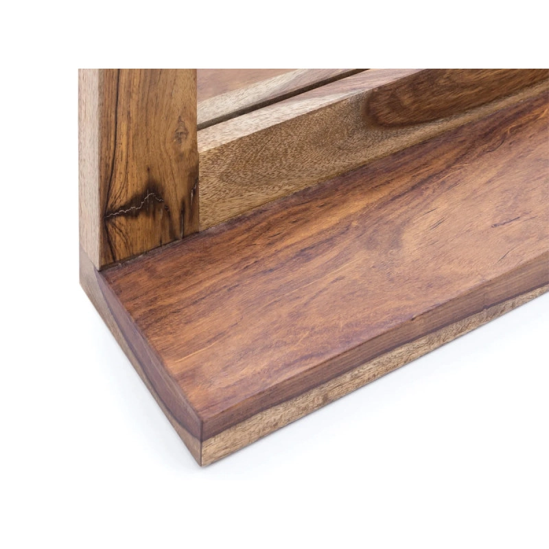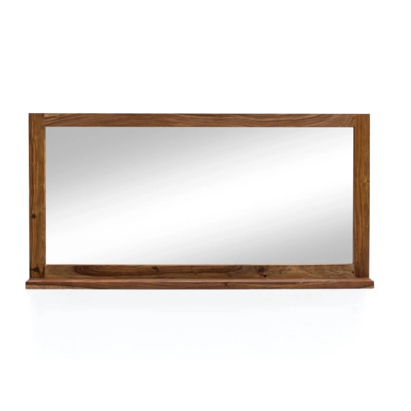 Entdecken Sie Eleganz und Robustheit im massiven Badezimmer spiegel Leeston, gefertigt aus hochwertigem Palisander mit lackierter brauner Oberfläche. Dieser rechteckige Spiegel mit den Maßen 130×65 cm verleiht Ihrem Bad nicht nur Praktikabilität, sondern auch einen Hauch von Luxus.