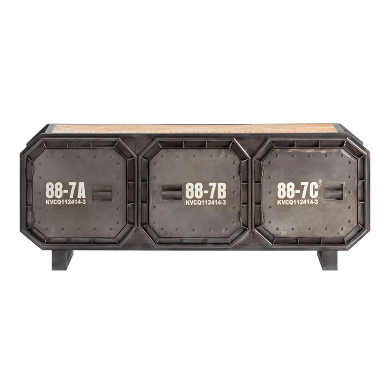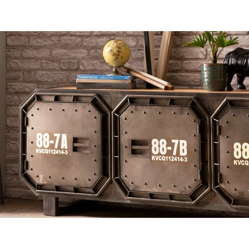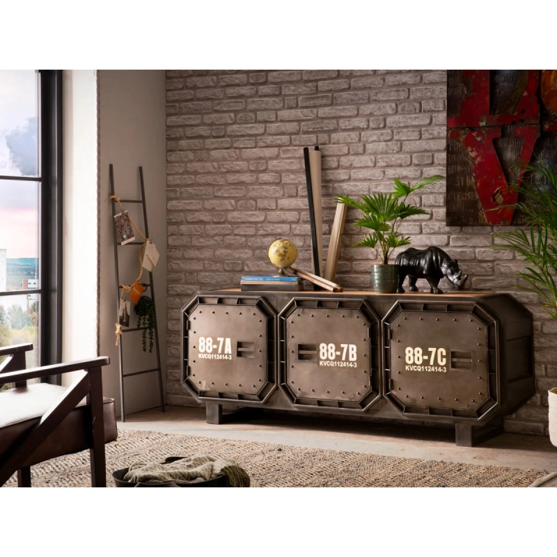 Masivní příborník Barkley z kovu v elegantní šedé barvě je dokonalým prvkem pro moderní obývací pokoj, který si zakládá na kvalitě a stylu. Jeho rozměry 180×50×70 cm poskytují dostatek úložného prostoru, ale zároveň nenarušují harmonii prostoru. Tento příborník se skvěle hodí k různým interiérovým stylům, od industriálního po minimalistický. Kovová konstrukce zaručuje nejen vysokou odolnost, ale také nadčasový vzhled. Povrch příborníku je pečlivě zpracovaný, což znamená, že si zachovává svůj elegantní vzhled i po delším užívání. Šedá barva dodává prostoru sofistikovanost a snadno se kombinuje s dalšími prvky v místnosti.