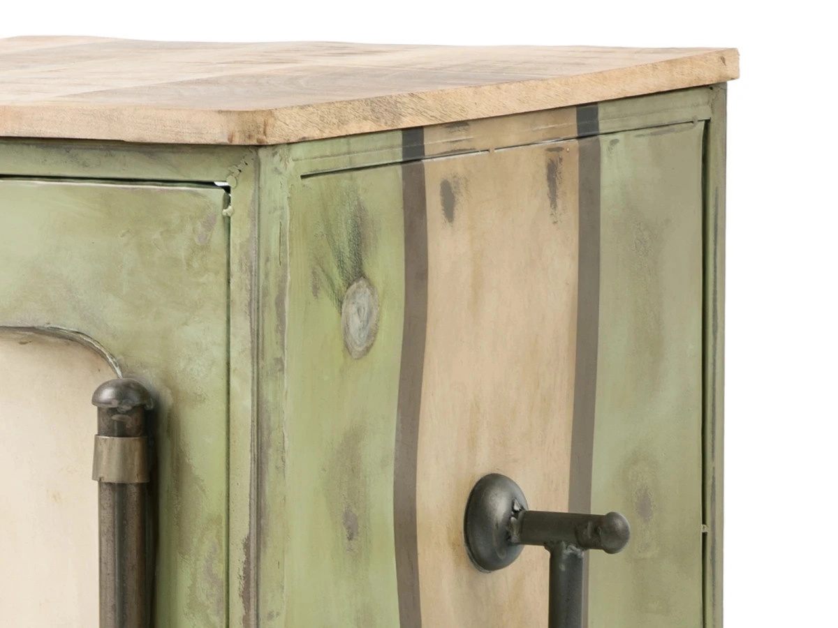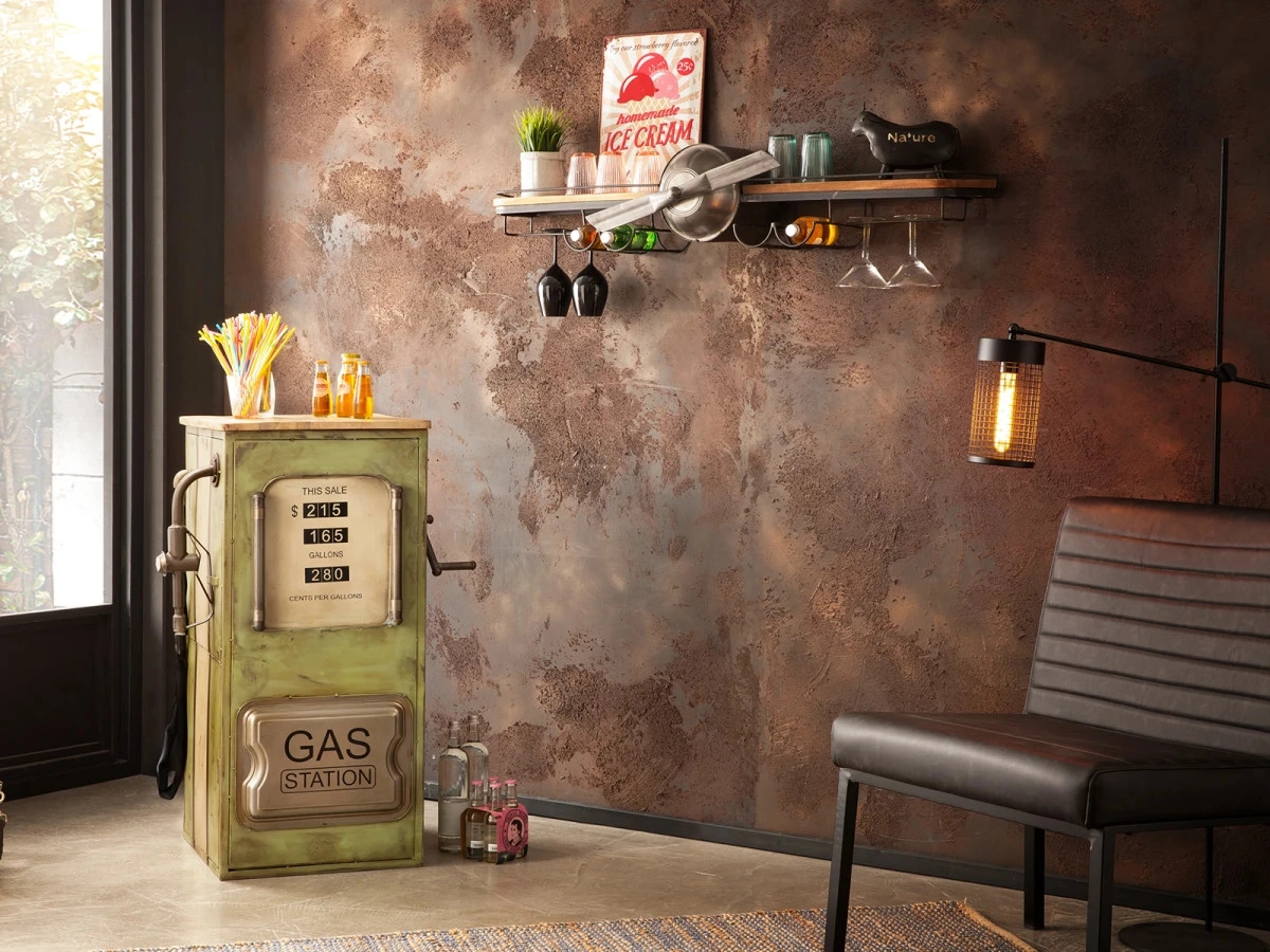 Barový regál Gas Station je jedinečným kouskem, který vnese do vašeho interiéru osobitý styl a šarm. Vyrobený z kvalitního mangového dřeva, jehož textura vypráví příběhy přírody, v kombinaci s robustním kovem, představuje harmonii moderního designu a přírodních materiálů. Lakovaný povrch dodává regálu nejen elegantní vzhled, ale také zajišťuje odolnost vůči každodennímu používání. V nádherné zelené barvě se stává výrazným prvkem, který oživí každý obývací pokoj. S rozměry 48×50×102 cm je ideální pro umístění v menších prostorech, přičemž nabízí dostatek úložného prostoru pro vaše oblíbené nápoje, sklenice a další barové doplňky.