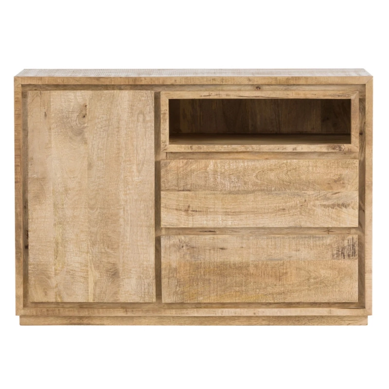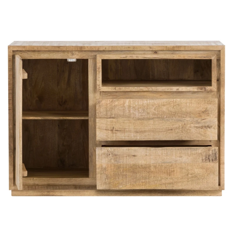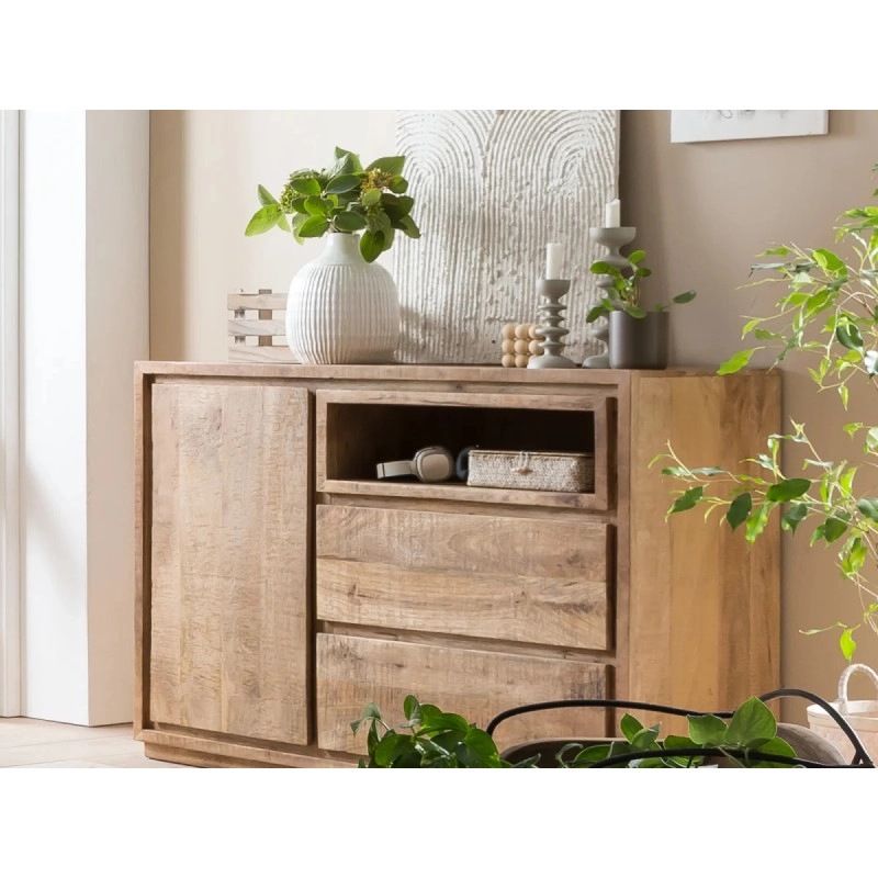 Příborník Blackdale vyrobený z kvalitního mangového dřeva přináší do každého obývacího pokoje výrazný a přitom přírodní prvek. Jeho lakovaný hnědý povrch a rozměry 115×43×80 cm zajistí, že se stane nejen praktickým, ale i stylovým úložným místem ve vašem domově.
