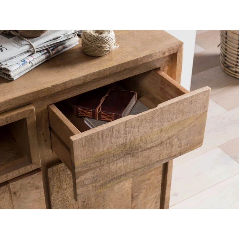 Kvalita zpracování tohoto kousku je patrná na první pohled. Mango dřevo, používané k jeho výrobě, je známé pro svou odolnost a jedinečné vzory, které dodávají každému kusu originální charakter. Příborník Blackdale nejenom že splňuje praktické potřeby, ale také přináší do vašeho domova pocit tepla a útulnosti. Je ideálním místem pro vystavení vašich oblíbených dekorací, nebo pro uložení nádobí a příborů. Neváhejte a vylepšete svůj interiér s tímto nadčasovým kouskem, který se stane nejen funkčním prvkem, ale i stylovým doplňkem vašeho obývacího pokoje. Objednejte si příborník Blackdale ještě dnes a přetvořte svůj domov v místo plné elegance a originality.