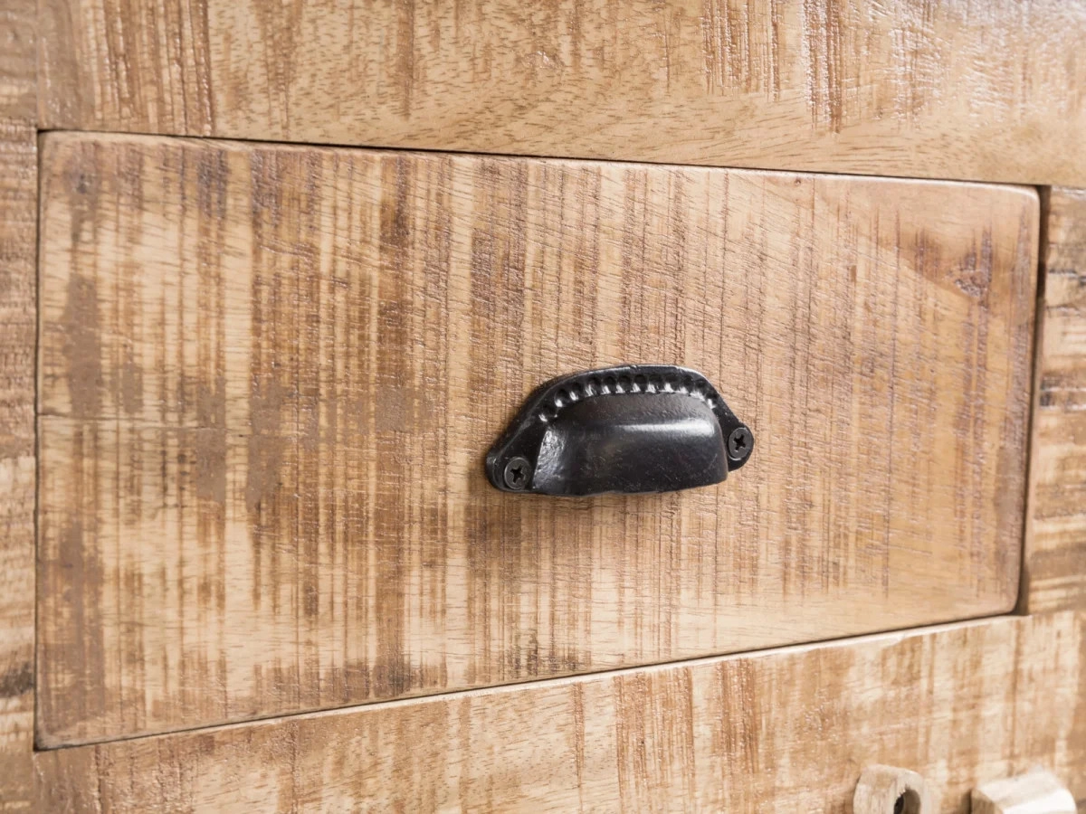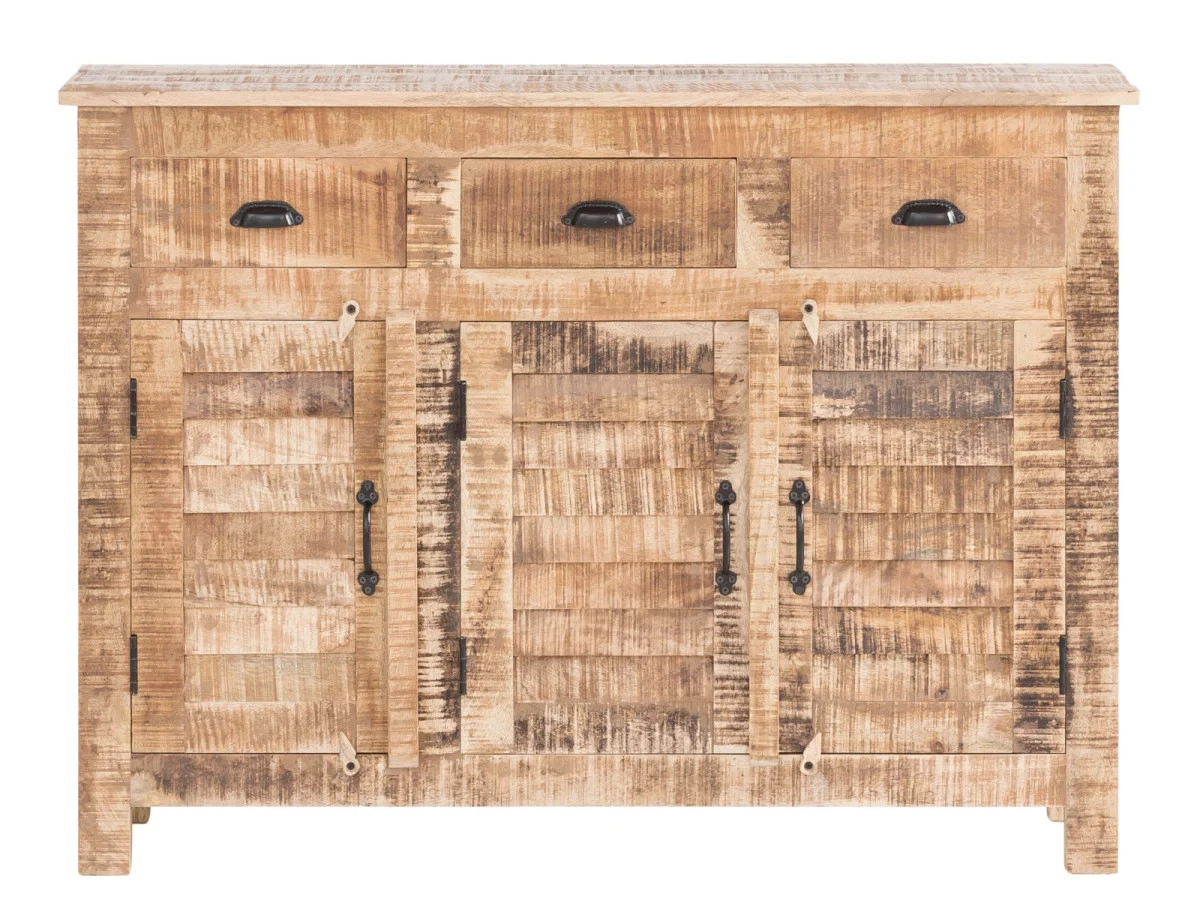 Masivní příborník Caribou vyrobený z kvalitního mangového dřeva je ideálním kouskem nábytku pro každý obývací pokoj. Díky své přírodní barvě a lakovanému povrchu dodá vašemu interiéru teplý, přírodní vzhled a nabízí dostatek úložného prostoru s rozměry 122×42×90 cm.