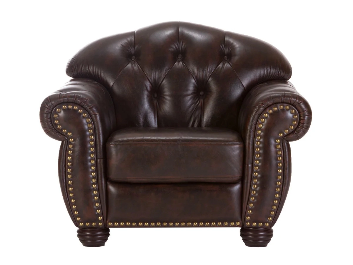 Objemte luxus a pohodlí s masivním křeslem Chesterfield Hereford, vyrobeným z pravé hnědé kůže. Toto elegantní křeslo, o rozměrech 112×96×94 cm, je dokonalým spojením tradičního designu a kvalitního zpracování, které dodá vašemu interiéru nádech noblesy.