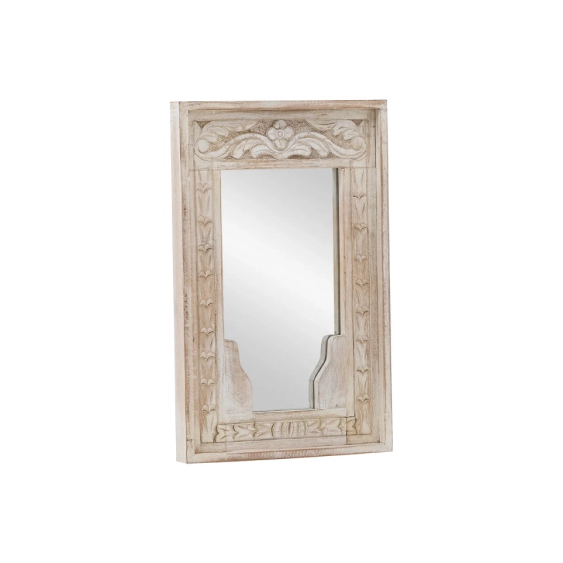 Objevte kouzlo masivního zrcadla Damchaya, vyrobeného z kvalitního mangového dřeva s lakovaným bílým povrchem, které dodá vašemu obývacímu pokoji nejen praktický, ale i estetický prvek. Jeho obdélníkový tvar a rozměry 39×5×62 cm perfektně zapadnou do moderního i tradičního interiéru.