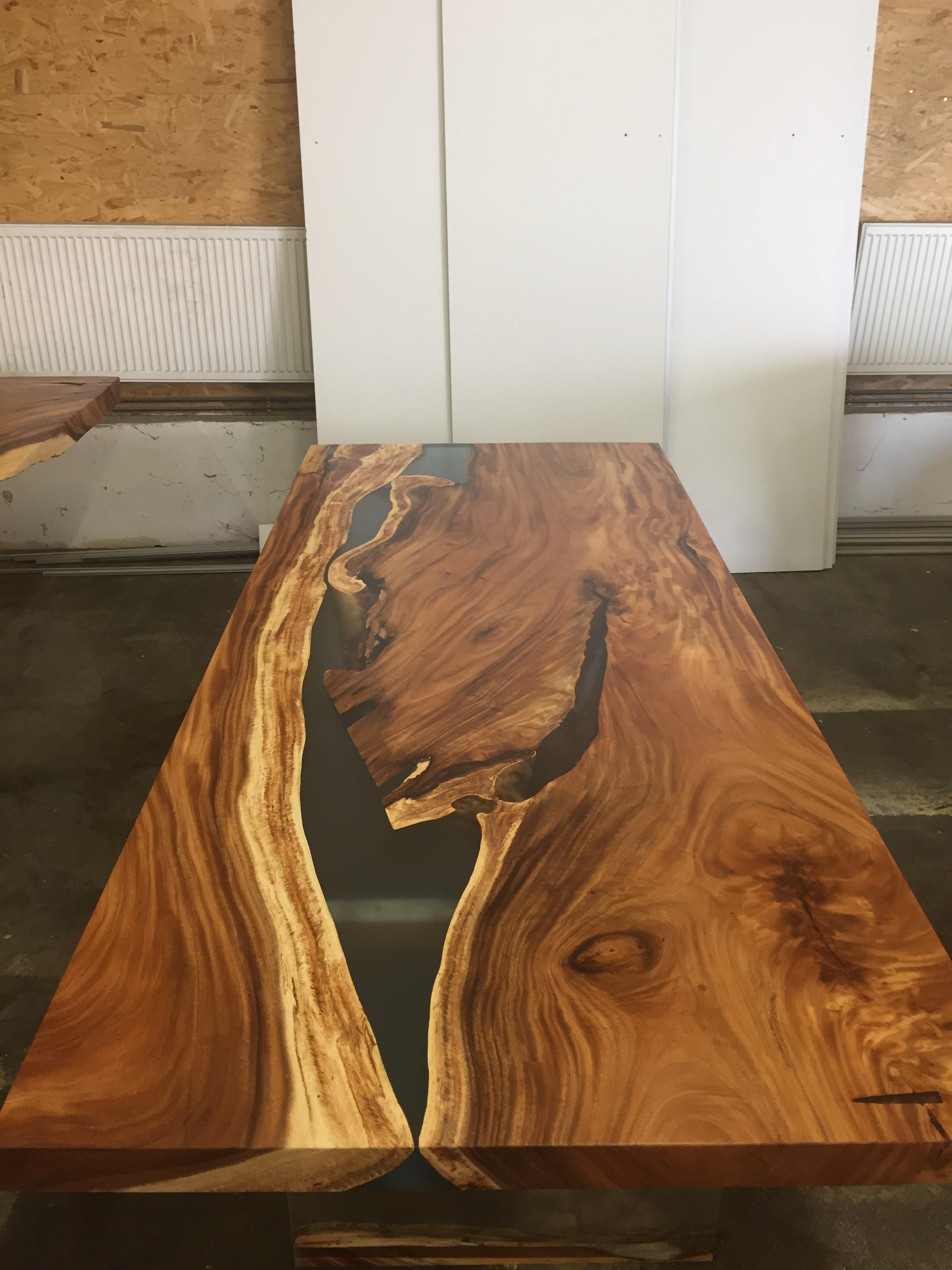 Vámi zvolená deska může mít přírodou vytvořené trhliny, ale vy máte na výběr, zda jejich zachováte nebo ne. Lze je vyplnit epoxidovou pryskyřicí a mít tak celou plochu stolu hladkou a dodat mu zcela nový vzhled. Pryskyřice může být čirá nebo v libovolné barvě jakou si zvolíte. Cena pryskyřice závisí na spotřebovaném množství.