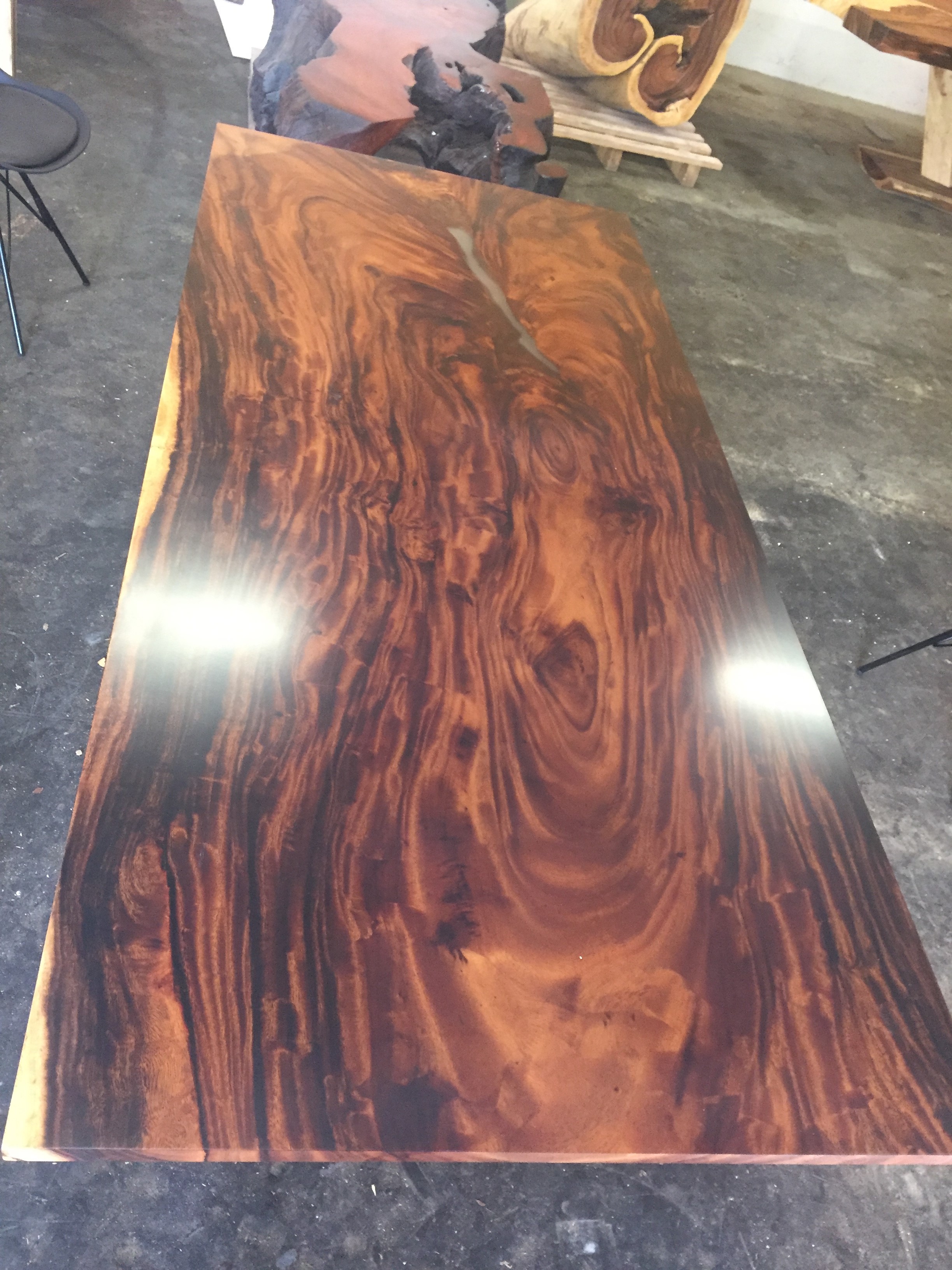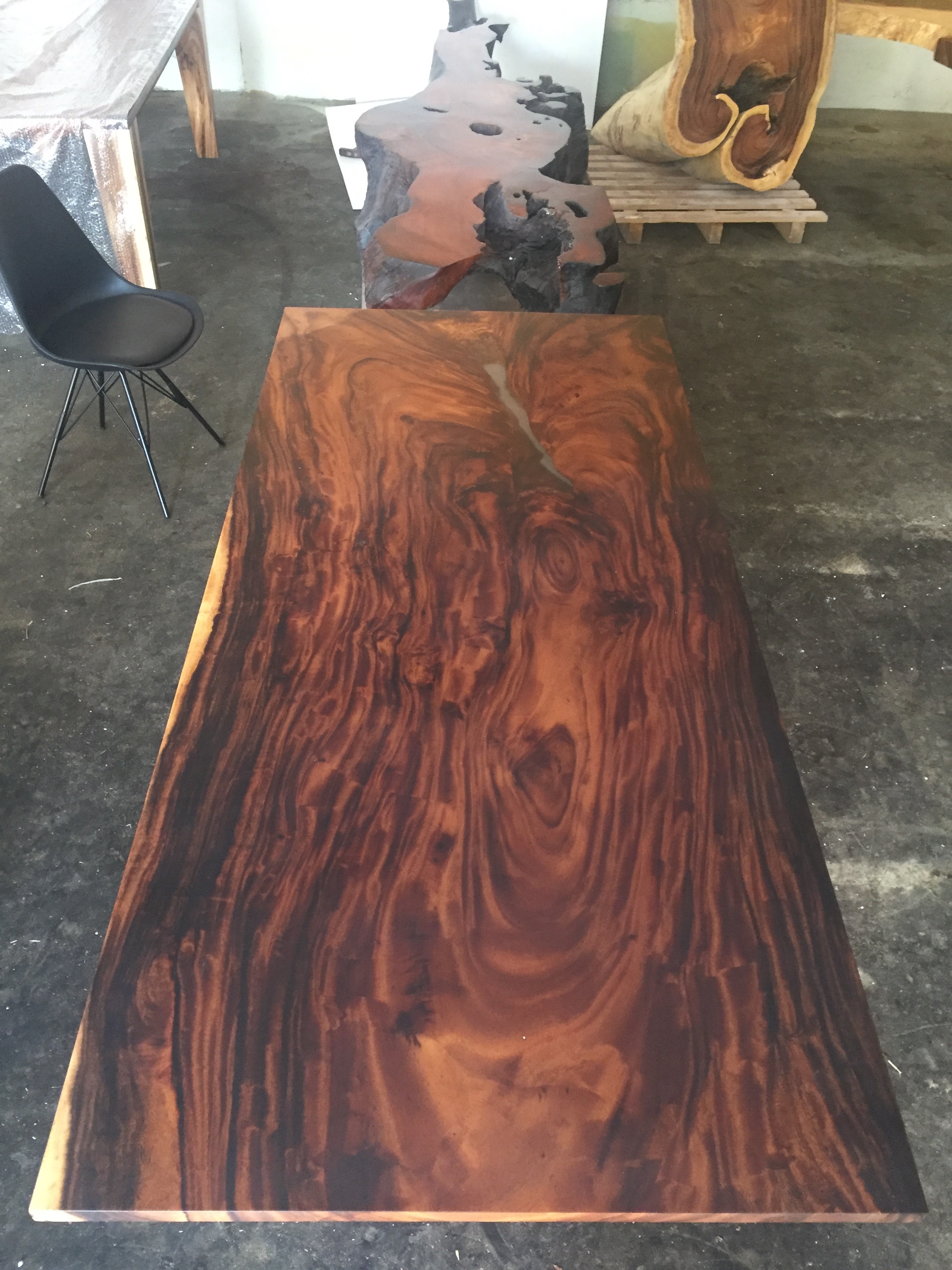 Stoly jsou vyráběny ze dřeva Akácie. Cena stolu závisí od rozměru desky. Délka stolu může být od 2 do 12 metrů a šířka od 70 centimetrů do 2 metrů, přičemž rozměry se počítají v nejužším bodě. Každý kus dřeva je jedinečný a každá deska má jinou strukturu a také proto máte možnost, vybrat si desku osobně, nebo zkontrolovat, jestli se vám námi vybraná deska miluje.