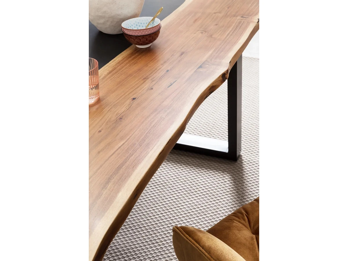 Masivní jídelní stůl Black River z akácie je dokonalým spojencem pro všechny, kteří touží po stylovém a funkčním centru domova. Jeho elegantní kombinace přírodní a černé barvy vdechne vašemu interiéru jedinečný šarm a moderní nádech. Tvar stolu, který se pyšní rozměry 170×90×75 cm, zajišťuje dostatek prostoru pro rodinné večeře, přátelské setkání nebo kreativní chvíle s dětmi. Každý detail tohoto stolu je promyšlený, od precizního zpracování akáciového dřeva, které v sobě nese příběh přírody, až po lakovaný povrch, jenž dodává stolu nejen estetiku, ale i odolnost vůči každodennímu používání.