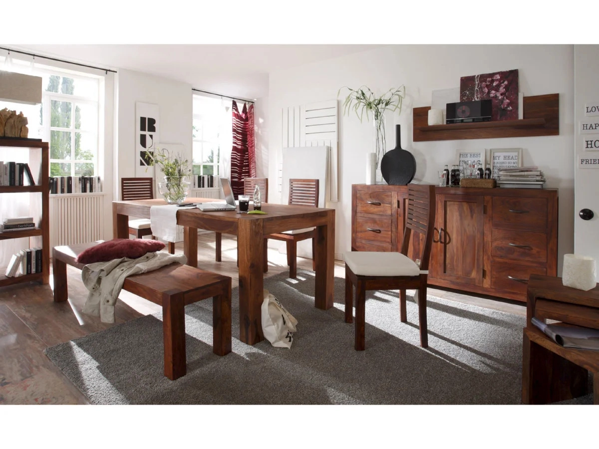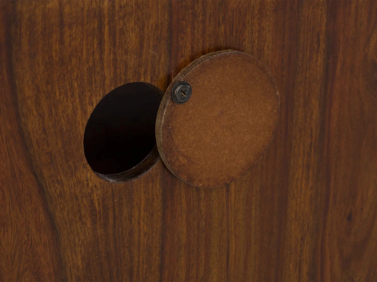 Die Verarbeitungsqualität hat oberste Priorität. Der für die Herstellung dieses Tisches ausgewählte Palisander besticht nicht nur durch seine Schönheit, sondern auch durch seine Widerstandsfähigkeit. Dieses edle Material zeichnet sich durch einzigartige Muster und Texturen aus, die Ihrem Zuhause ein originelles Aussehen verleihen. Die lackierte Oberfläche schützt das Holz vor Beschädigungen und erleichtert die Pflege, was Sie an hektischen Tagen, an denen Sie wenig Zeit für das Putzen haben, zu schätzen wissen werden.