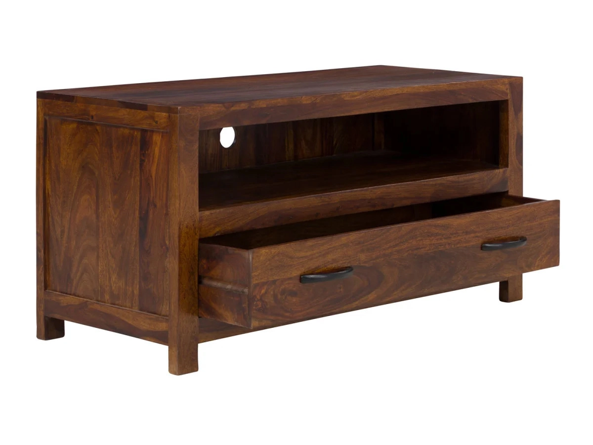 Entdecken Sie den Zauber des massiven TV-Tisches Palison aus Palisander, der mit seinem eleganten braunen Lack Ihrem Interieur eine einzigartige Note von Noblesse verleiht. Mit den Abmessungen von 100×42×50 cm passt er hervorragend in verschiedene Räume und bietet nicht nur praktische Nutzung, sondern auch eine stilvolle Atmosphäre für Ihre Entspannungsmomente.