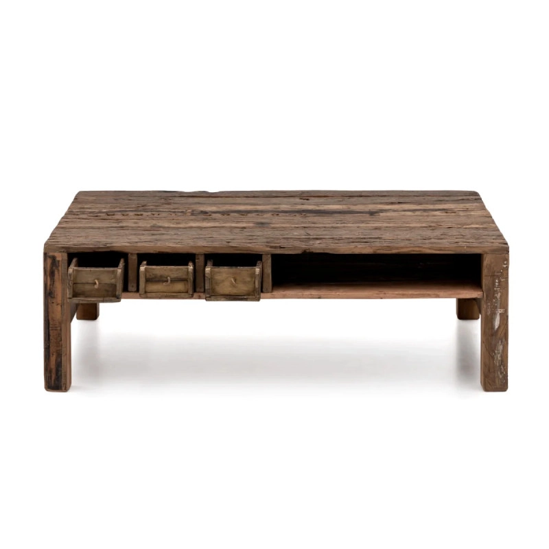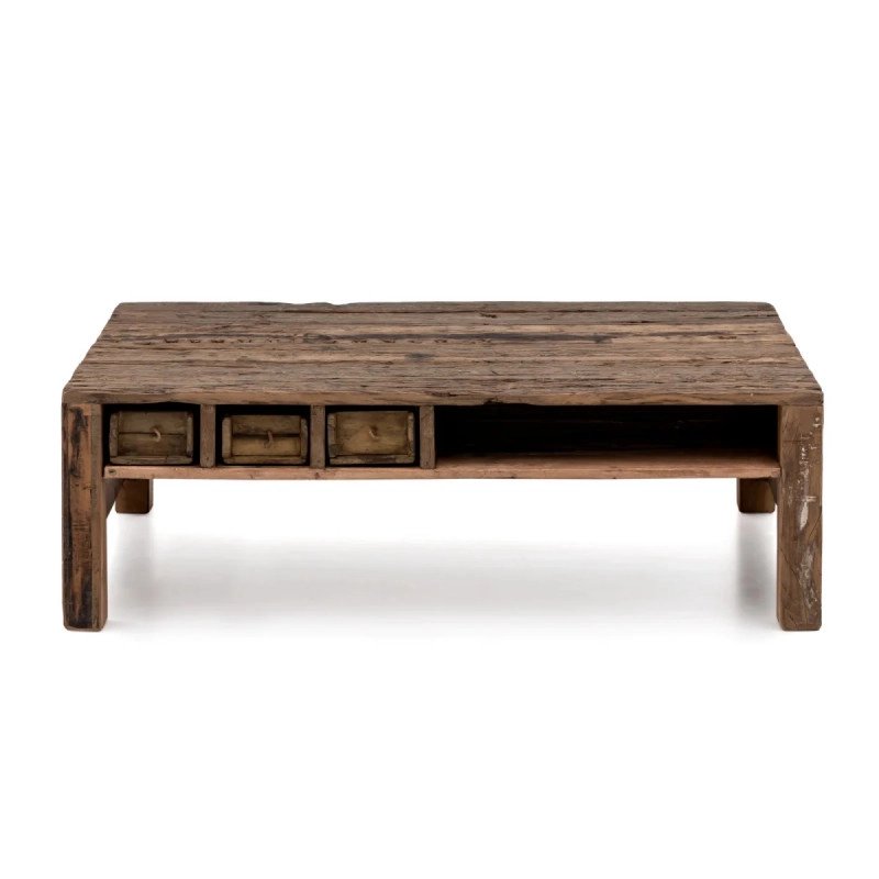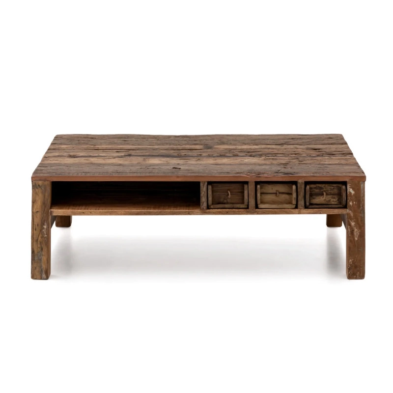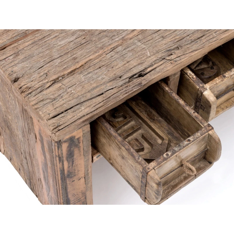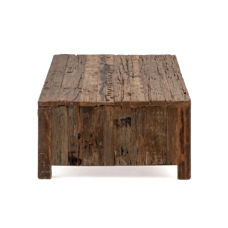 Objevte kouzlo rustikálního stylu s konferenčním stolkem Madurai, vyrobeným z recyklovaného starého dřeva, které zanechává každý kus unikátním. Tento nezpracovaný, hnědý stůl o rozměrech 125×75×40 cm přinese do vašeho obývacího pokoje teplou a přírodní atmosféru.