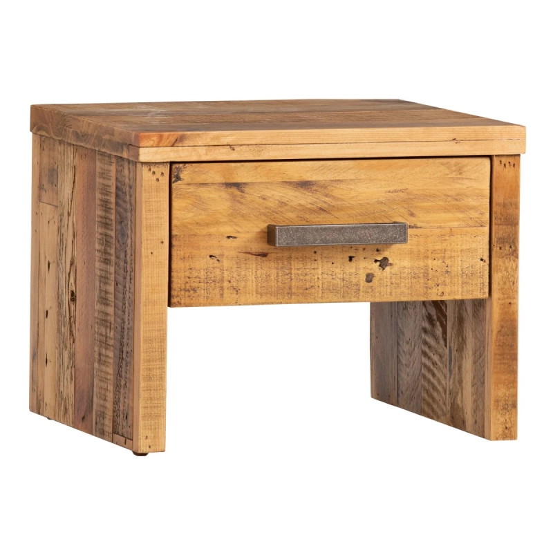 Masivní noční stolek Albury, vyrobený z recyklované borovice a ošetřený lakem pro dlouhodobou ochranu, přináší do vaší ložnice kus přírody. Jeho přírodní barva a rozměry 40 cm × 35 cm × 31 cm dodají prostoru teplý a útulný nádech, zatímco robustní design zajistí praktičnost a trvanlivost.