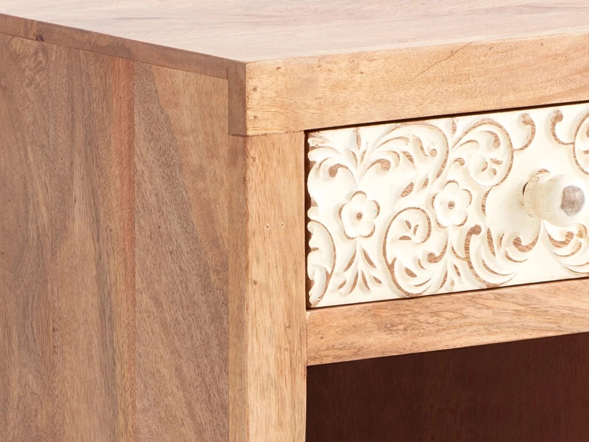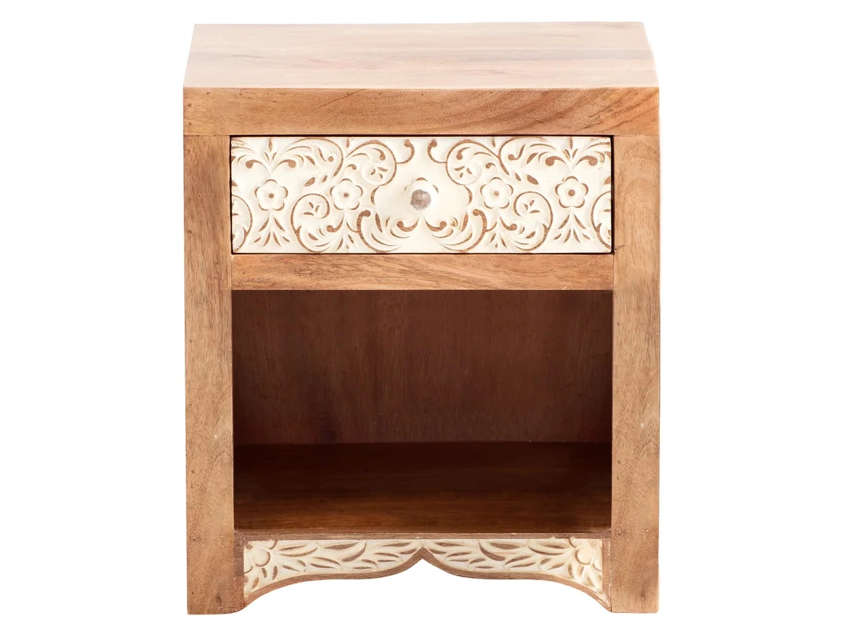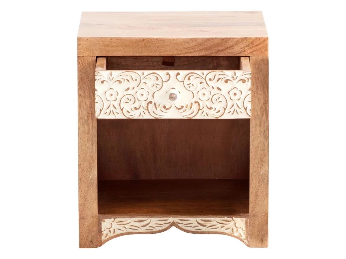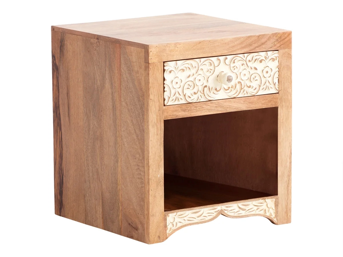 Objevte kouzlo ručně vyrobeného nočního stolku Delhi z kvalitního mangového dřeva, který svým lakovaným hnědým provedením a rozměry 40×40×45 cm přinese do vaší ložnice teplý a přírodní nádech. Tento masivní kousek bude nejen praktickým, ale i stylovým doplňkem vedle vaší postele.