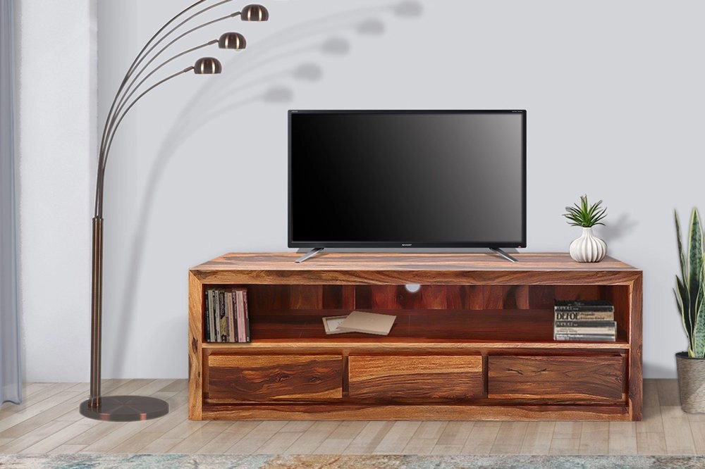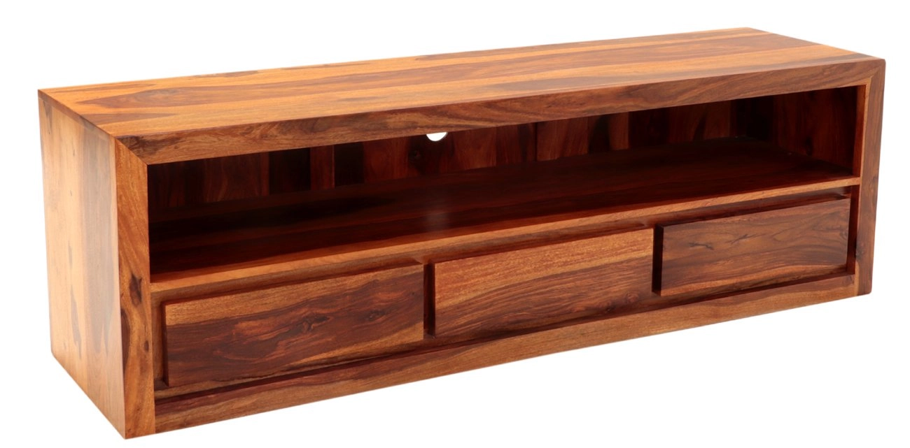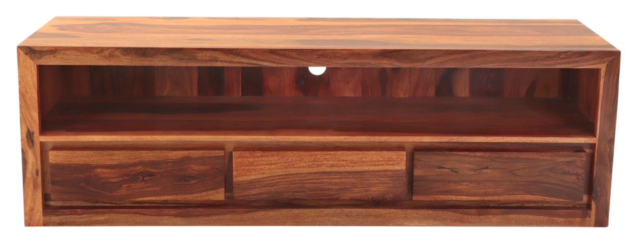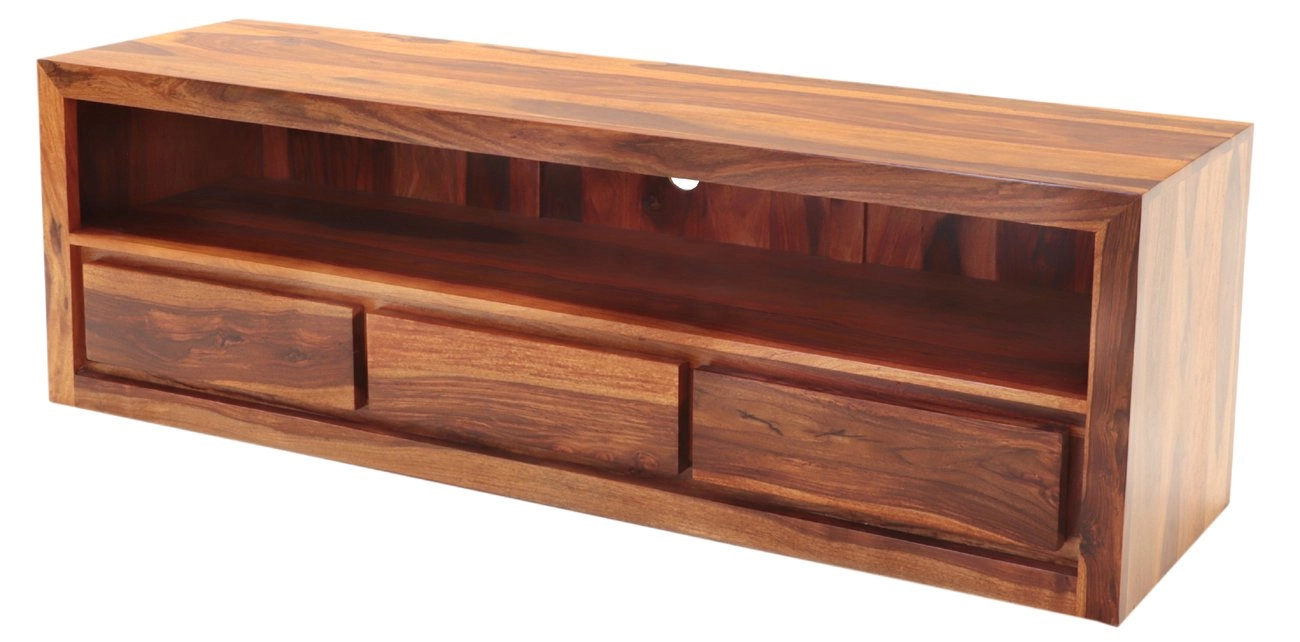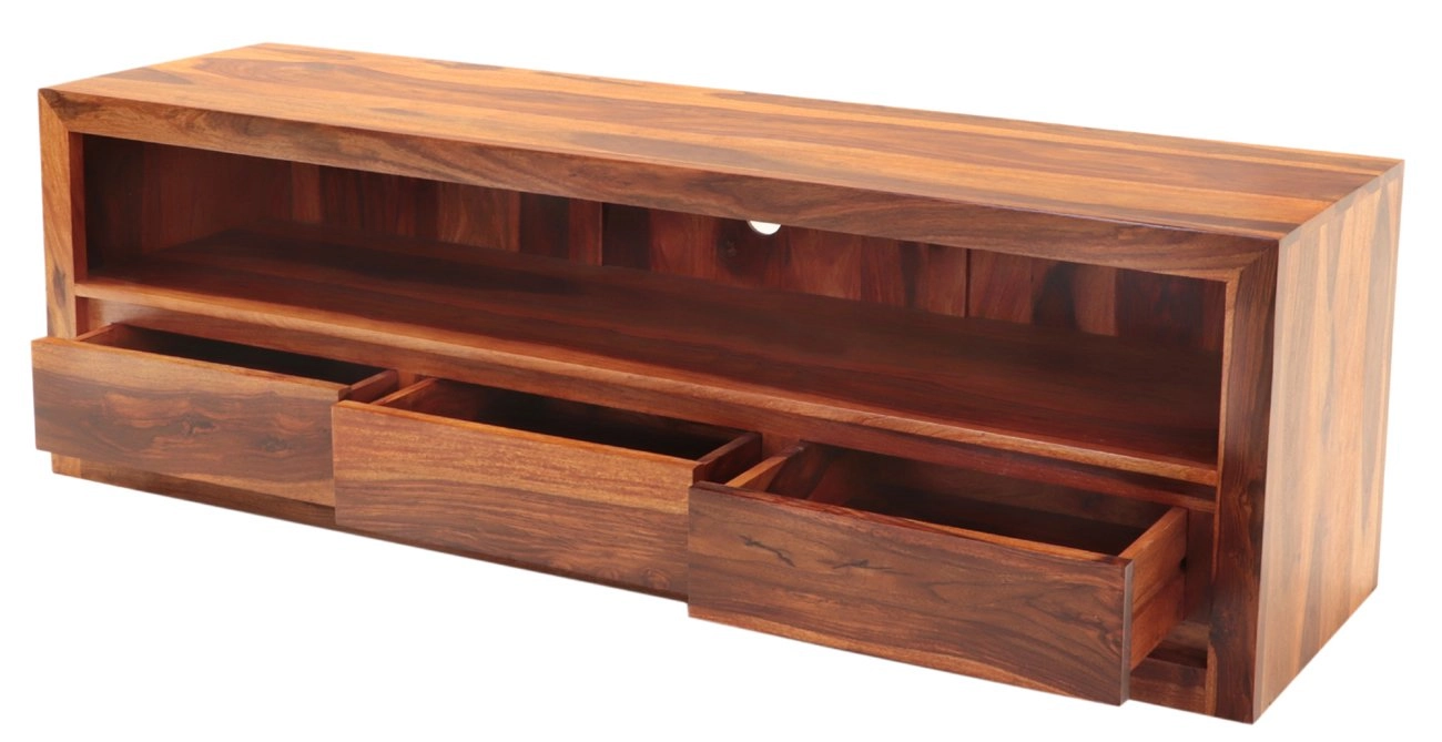 Tento dřevěný TV stolek je vybaven třemi prostornými zásuvkami, které nabízí dostatek skrytého úložného prostoru pro vaše mediální příslušenství, knihy nebo dekorace. Horní úložný prostor, vysoký 18 cm, vám poskytuje praktické a snadno přístupné místo pro umístění elektroniky nebo dekorací, které chcete mít na dosah ruky. Vysoce kvalitní palisandrové dřevo je známé pro svou trvanlivost a unikátní kresbu, díky čemuž je každý dřevěný TV stolek jedinečnou dekorací interiéru.