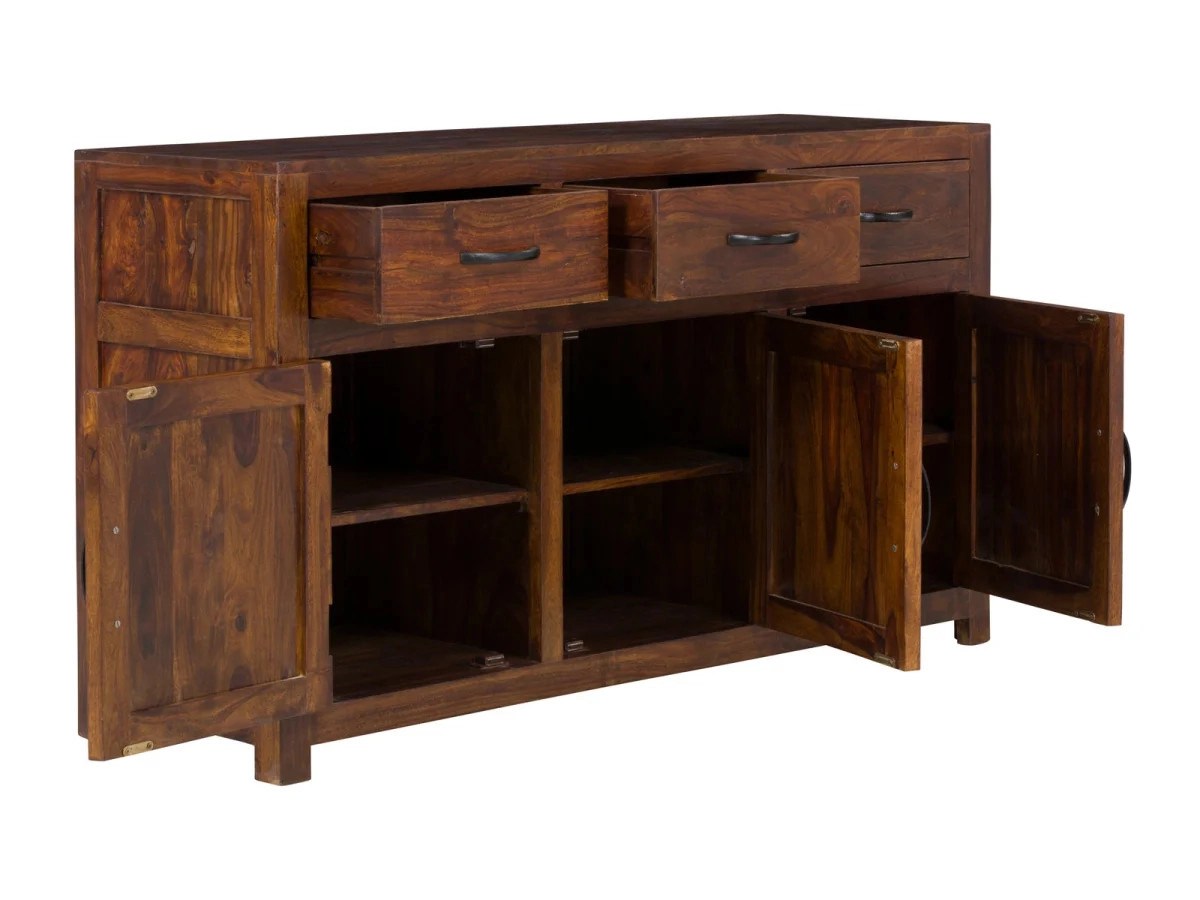 Masivní příborník Palison, vyrobený z kvalitního palisandrového dřeva, je ideálním řešením pro váš obývací pokoj. S jeho lakovaným hnědým povrchem a rozměry 140×42×80 cm přináší nejen funkčnost, ale i elegantní design, který oživí každý interiér.