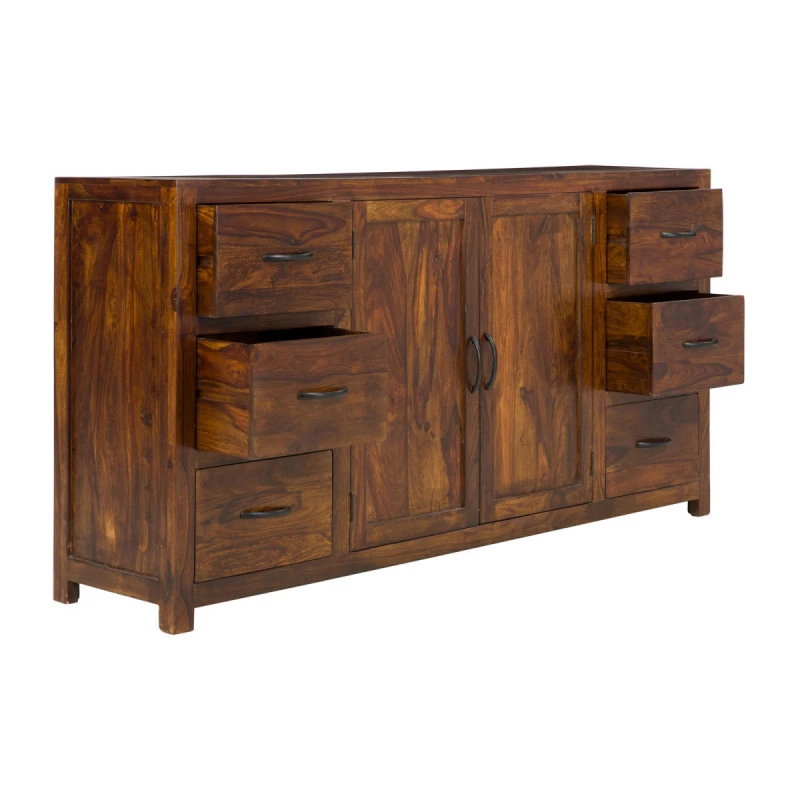 Příborník Palison z kvalitního lakovaného palisandrového dřeva v teplém hnědém odstínu přináší eleganci a funkčnost do každého obývacího pokoje. S rozměry 180×42×95 cm nabízí dostatek úložného prostoru a stane se středobodem vaší domácnosti.