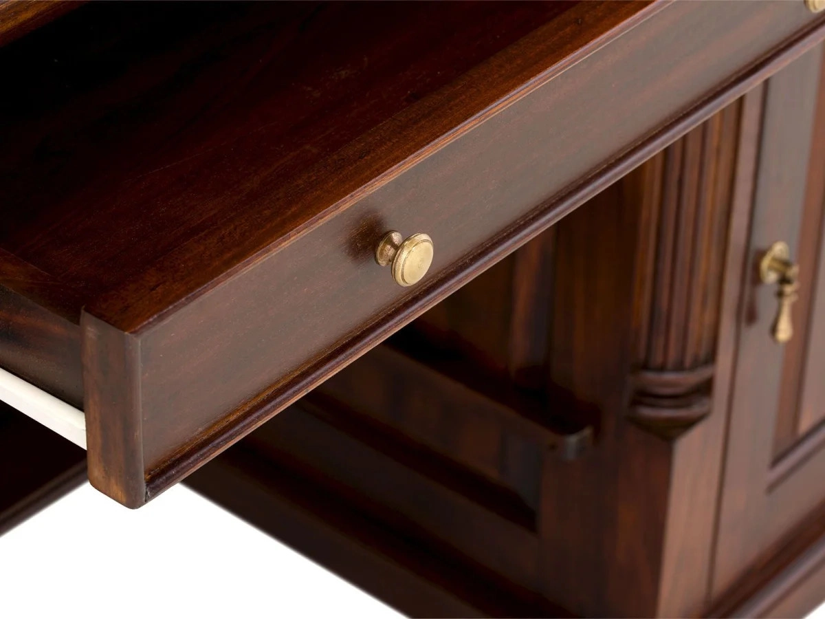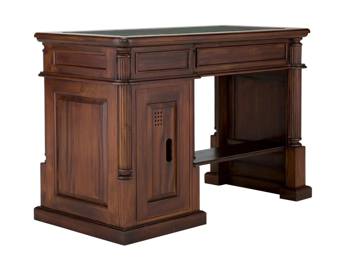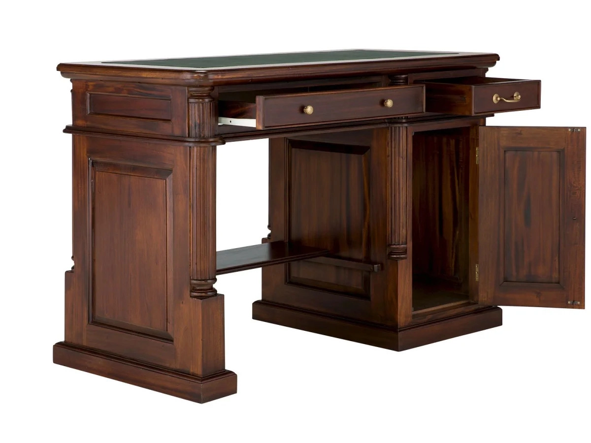 Jaké místo ve vašem domově je symbolem inspirace a produktivity? Představujeme vám masivní psací stůl Cambridge, který v sobě snoubí eleganci a funkčnost. Tento kus nábytku je vyroben z prvotřídního mahagonu, což je dřevo ceněné pro svou pevnost a výraznou kresbu. Jeho povrch je ošetřen kvalitním lakem, který nejen zvýrazňuje hlubokou hnědou barvu dřeva, ale zároveň chrání stůl před každodenním opotřebením.