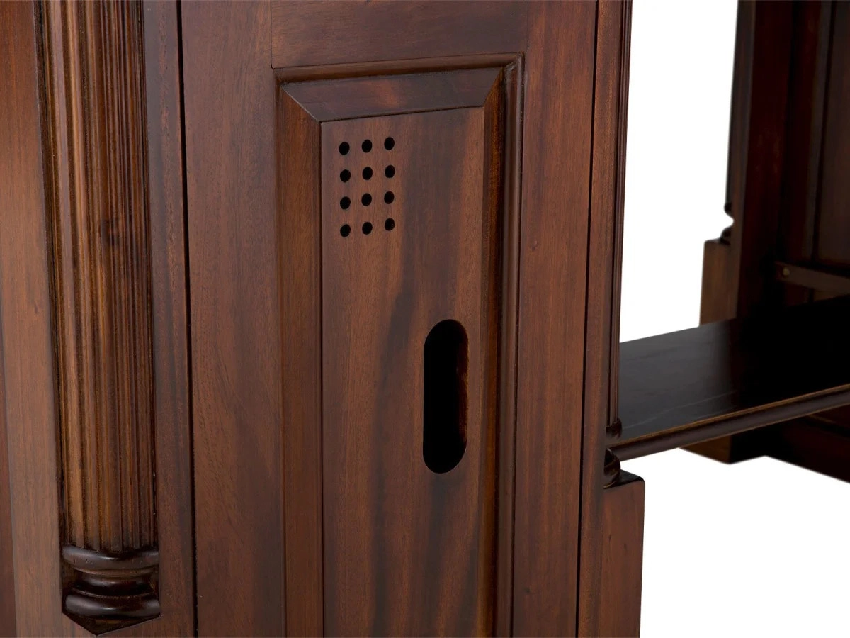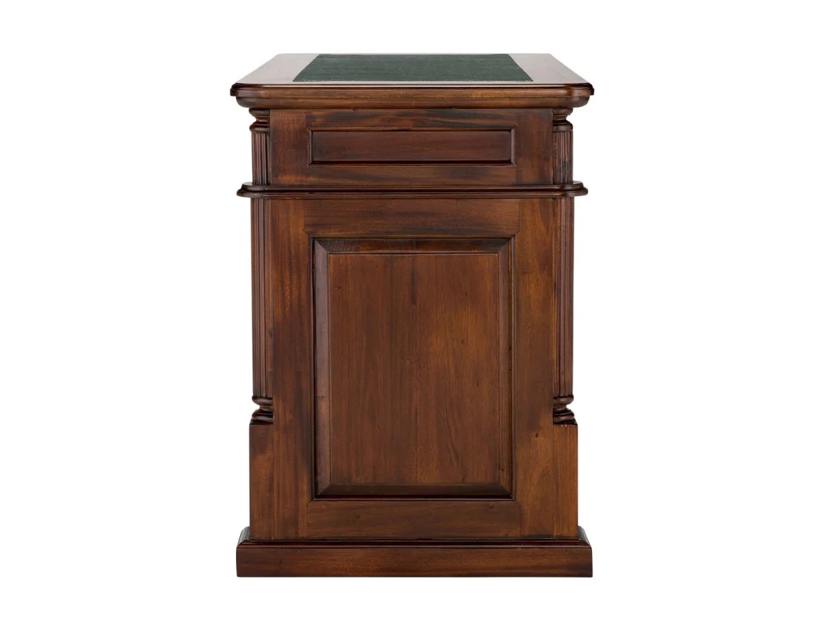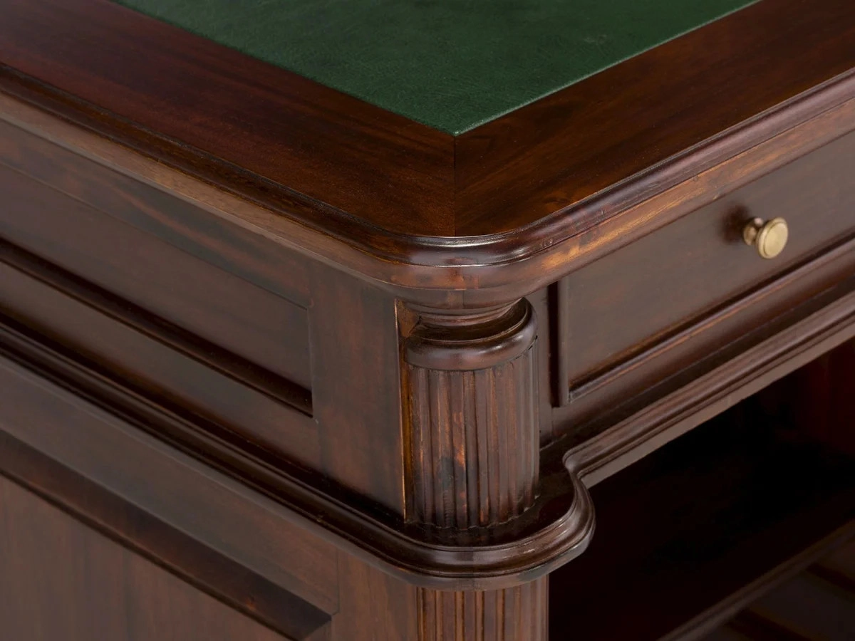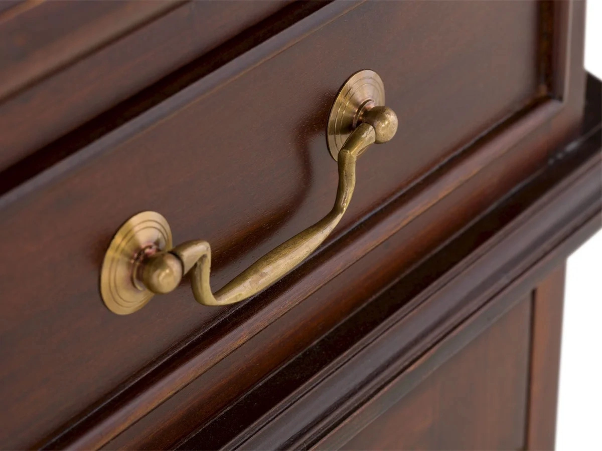 Jaké místo ve vašem domově je symbolem inspirace a produktivity? Představujeme vám masivní psací stůl Cambridge, který v sobě snoubí eleganci a funkčnost. Tento kus nábytku je vyroben z prvotřídního mahagonu, což je dřevo ceněné pro svou pevnost a výraznou kresbu. Jeho povrch je ošetřen kvalitním lakem, který nejen zvýrazňuje hlubokou hnědou barvu dřeva, ale zároveň chrání stůl před každodenním opotřebením.