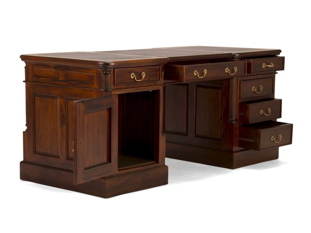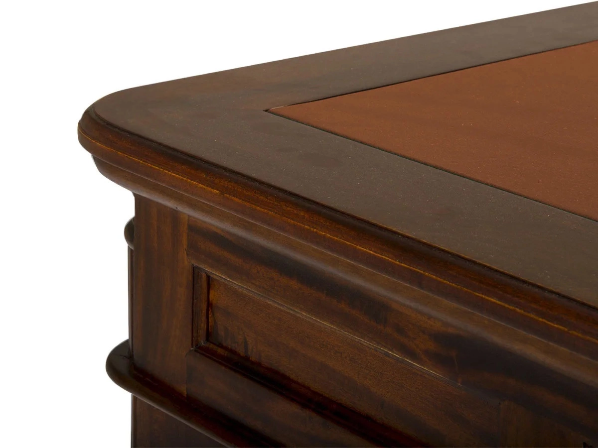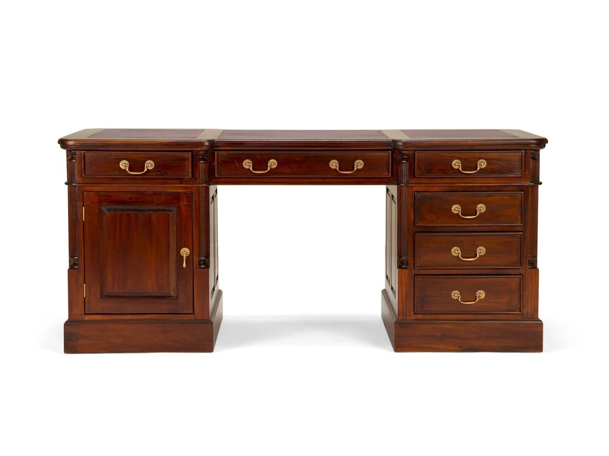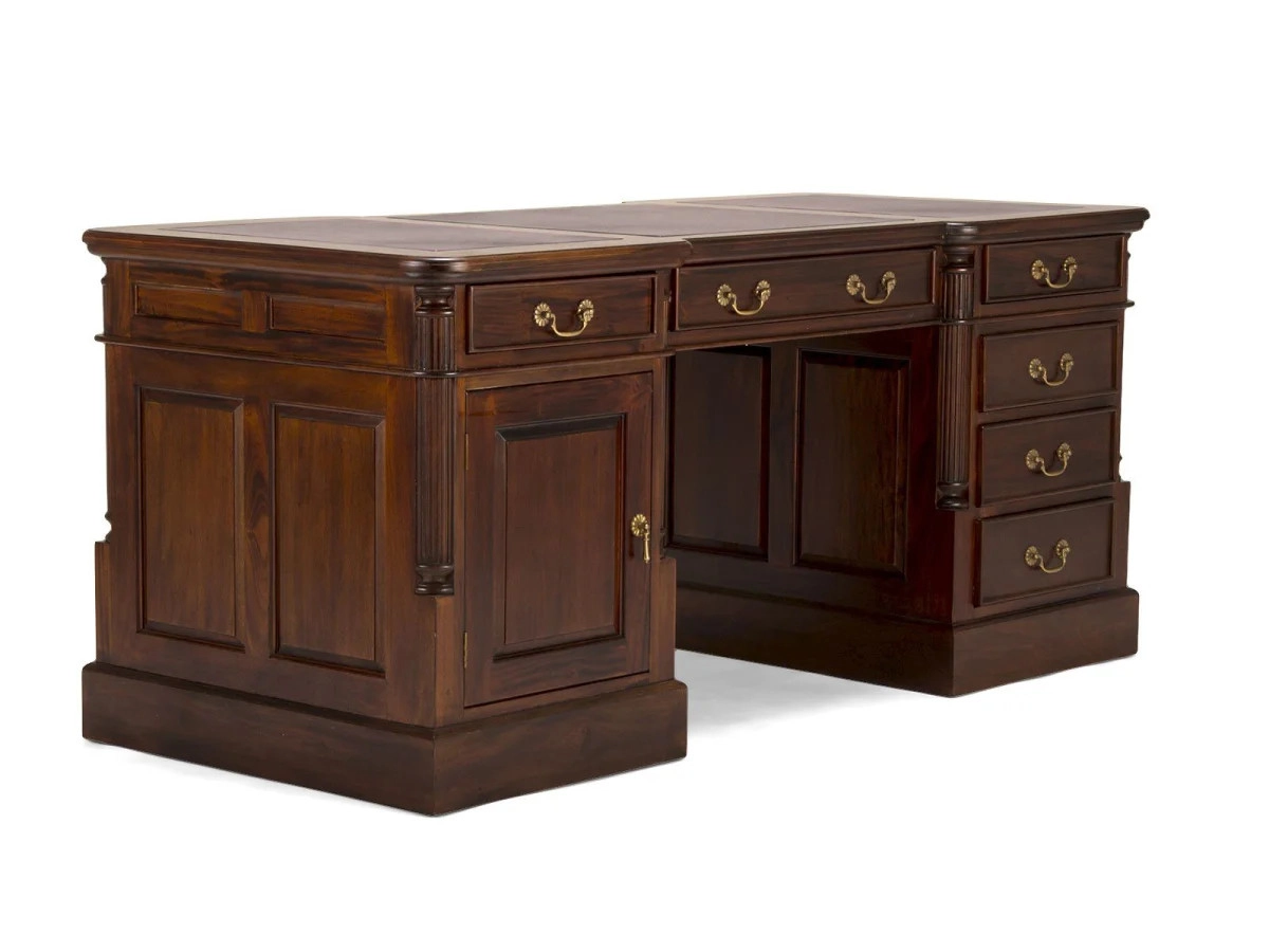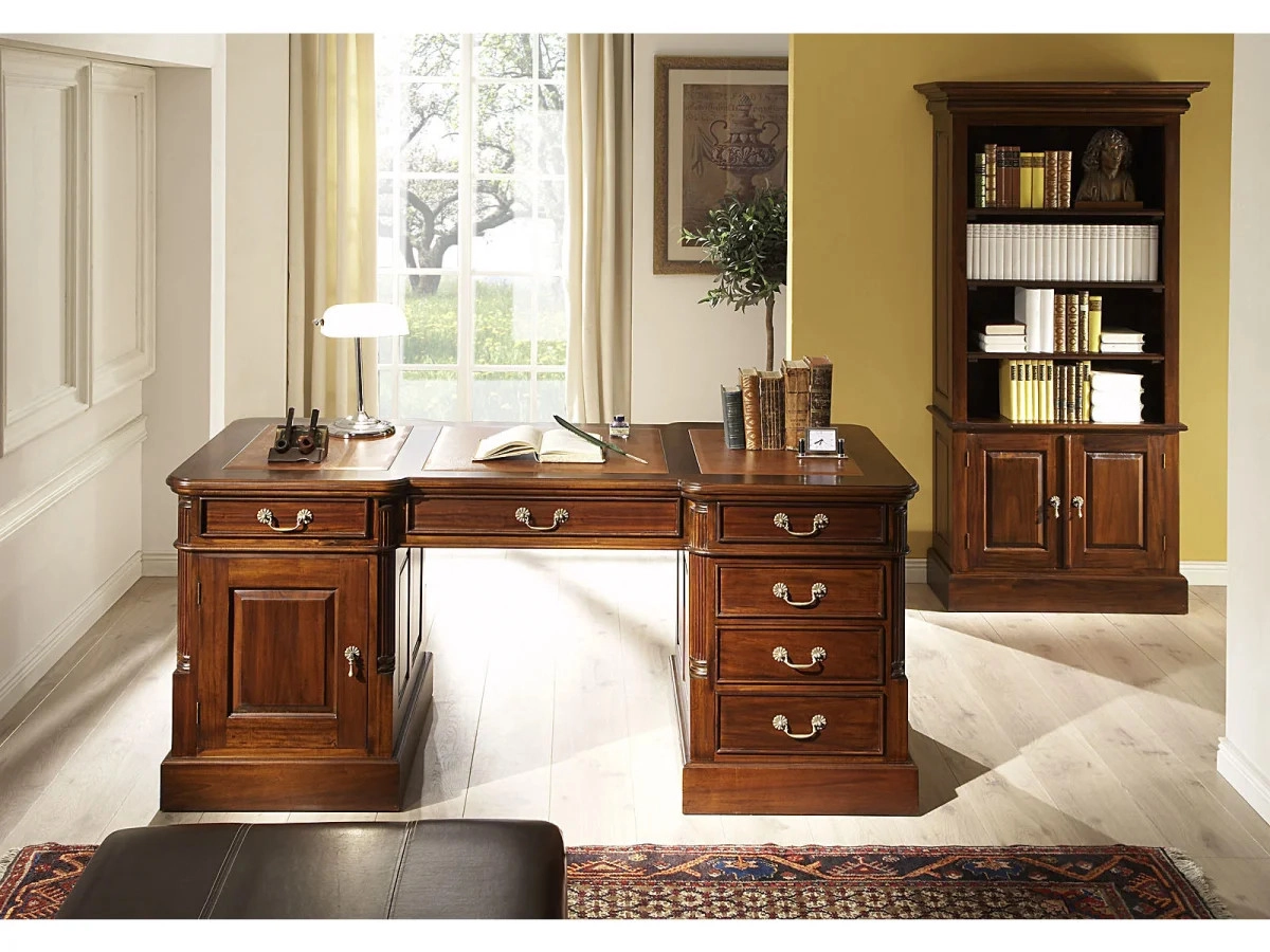 Masivní psací stůl Cambridge z mahagonu je dokonalou volbou pro ty, kteří hledají spojení elegance, kvality a funkčnosti. Jeho impozantní rozměry 160×80×80 cm zaručují dostatek prostoru pro veškerou vaši pracovní činnost, ať už se jedná o psaní, studium nebo kreativní projekty. Hnědá barva stolu dodává každému interiéru příjemnou, teplou atmosféru, která povzbuzuje k produktivnímu myšlení. Lakovaný povrch zvýrazňuje přirozenou krásu mahagonového dřeva a zajišťuje jeho odolnost vůči každodennímu opotřebení, což je ideální pro pracovní prostředí. Pracovní stůl Cambridge tak nejen že splňuje nároky na funkčnost, ale také se stane designovým prvkem vaší kanceláře či pracovny.