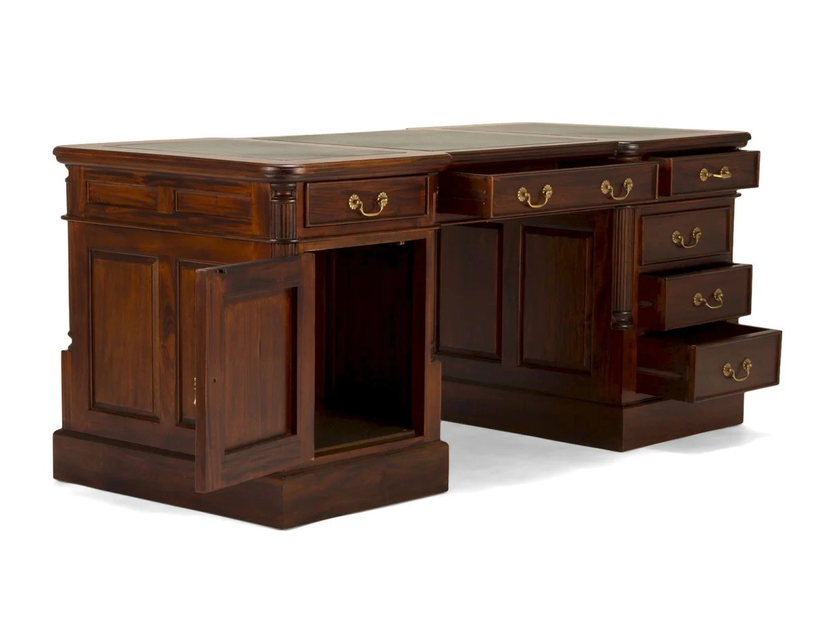 Kvalita zpracování stolu Cambridge je zřejmá na první pohled. Precizní detaily a hladký povrch zaručují dlouhou životnost a snadnou údržbu, což je ideální pro moderní, uspěchaný životní styl. Zelená kůže doplňuje celkový design a vytváří příjemný kontrast s mahagonovým dřevem, čímž dává prostoru jedinečný nádech elegance. Ať už si za tento stůl sednete pro práci, studium nebo kreativní činnost, vždy budete mít pocit, že jste obklopeni kvalitou a stylem. Vytvořte si inspirativní pracovní prostředí s tímto výjimečným kouskem, který nezklame ani ty nejnáročnější. Neváhejte a dopřejte si luxus, který si zasloužíte!