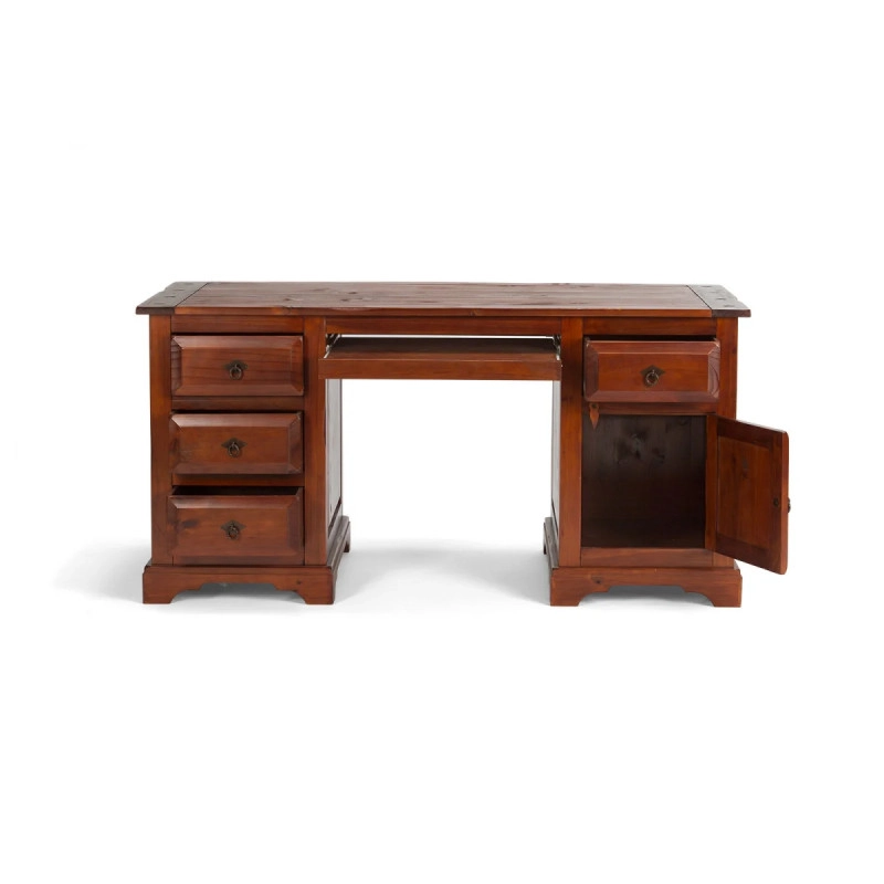 Masivní psací stůl Catana z borovice je dokonalým spojením elegance a funkčnosti, které dodá vašemu interiéru jedinečný šarm. Vyrobený z kvalitního borovicového dřeva, tento stůl nejenže vyniká svou odolností, ale také přináší do vašeho pracovního prostoru hřejivou atmosféru. Lakovaný povrch v hnědém odstínu zvýrazňuje přirozenou strukturu dřeva a zajišťuje snadnou údržbu, což je ideální pro každodenní používání. S rozměry 160×70×78 cm se stůl skvěle hodí do různých prostorů, ať už hledáte místo pro kreativní práci, studium nebo jednoduché psaní. Jeho čisté linie a robustní tvar vytvářejí harmonický dojem, který snadno zapadne do klasického i moderního interiéru.