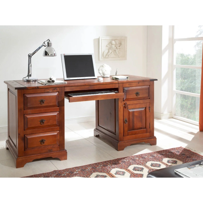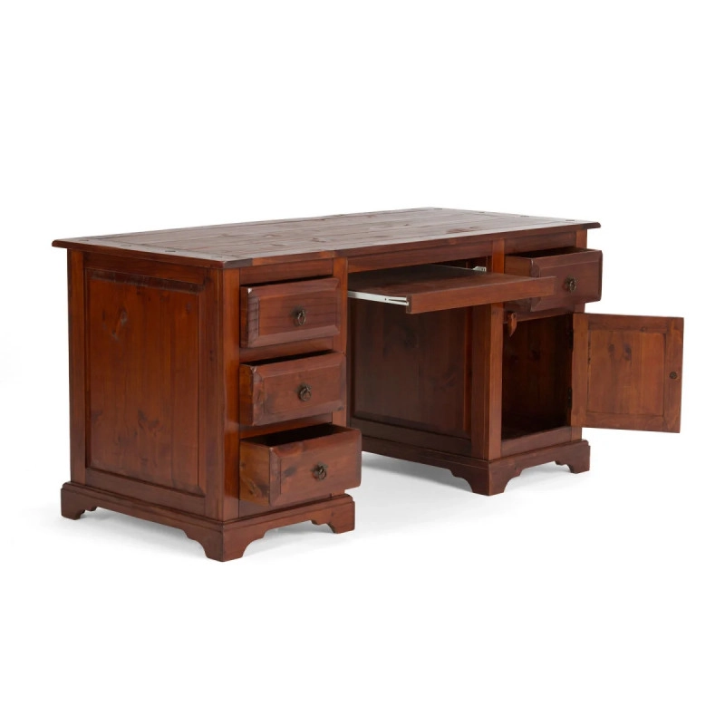 Objednejte si masivní psací stůl Catana, který se stane elegantním a funkčním doplňkem vaší ložnice. Tento ručně vyrobený stůl z lakované borovice v hnědé barvě nabízí dostatek prostoru pro každodenní práci i studium s rozměry 160×70×78 cm.