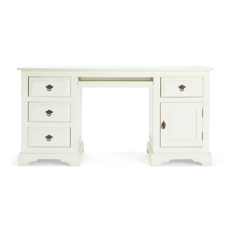 Masivní psací stůl Catana, vyrobený z kvalitní borovice a dokončený bílým lakem, je ideální volbou pro každou ložnici či pracovní kout. Jeho rozměry 160×70×78 cm nabízejí dostatek prostoru pro pohodlnou práci a harmonicky doplní interiér vašeho domova.
