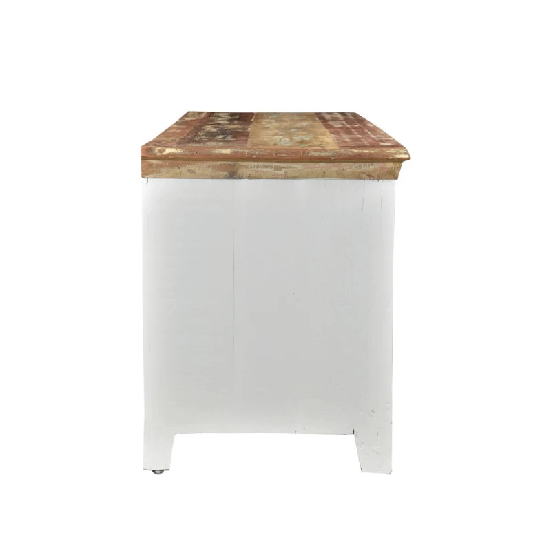 Objevte kouzlo udržitelnosti s TV stolem Perth, vyrobeným z recyklovaného tvrdého dřeva. Tento robustní a stylový kus nábytku v bílé a barevné kombinaci, s lakovaným povrchem pro dlouhodobou odolnost, dodá vašemu obývacímu pokoji nejen praktický, ale i vizuálně atraktivní prvek. Rozměry 150×50×60 cm nabízí dostatek prostoru pro vaši televizi a další multimediální zařízení.