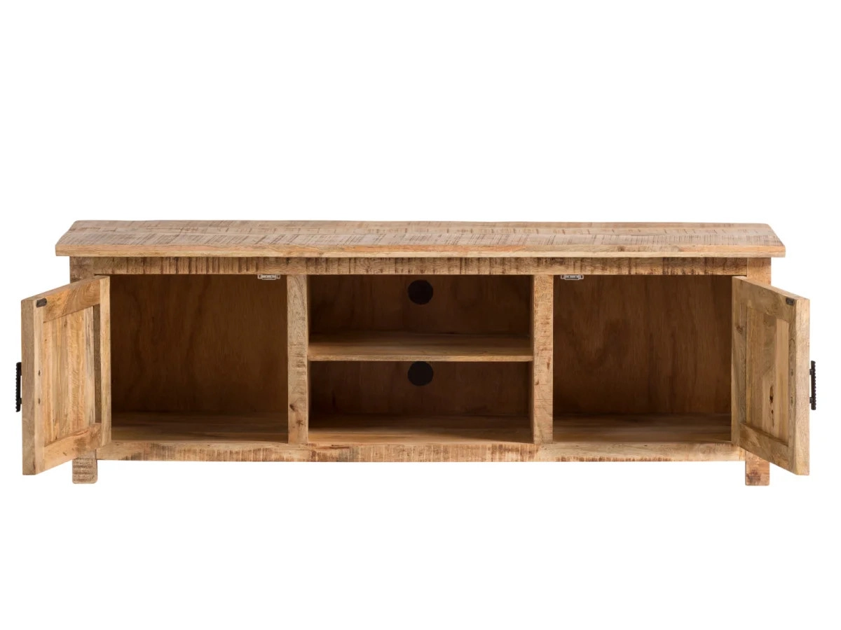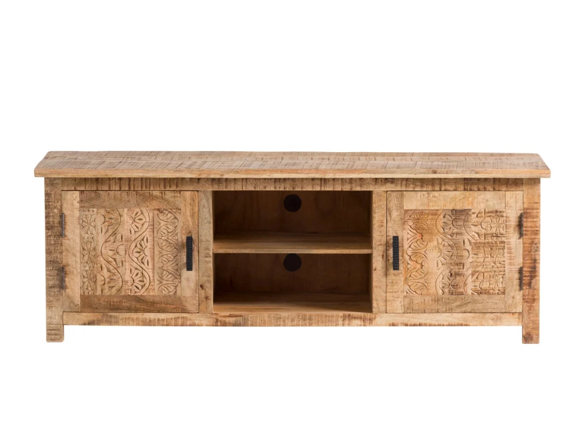 Objednejte si exkluzivní TV stolek Bombay, který je vyroben z kvalitního mangového dřeva a dokonale doplní interiér vašeho obývacího pokoje. Jeho lakovaný hnědý povrch a rozměry 150×42×50 cm z něj činí nejen praktický, ale i esteticky atraktivní kus nábytku.