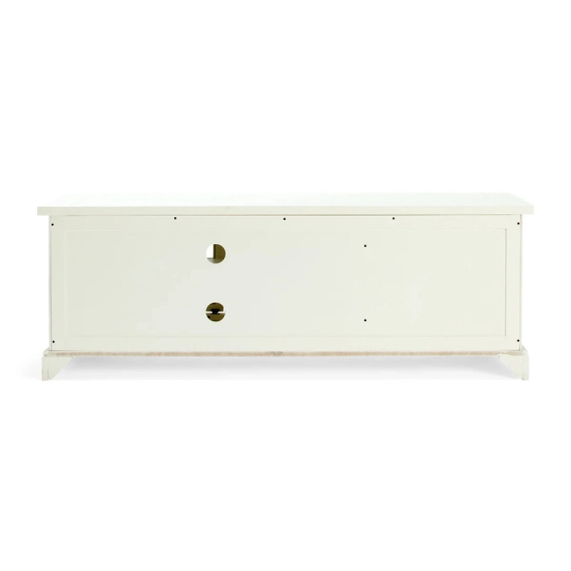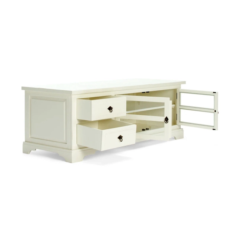 Vyrobený z vysoce kvalitního borovicového dřeva, stolek Catana vyniká svou odolností a trvanlivostí. Lakovaný povrch mu dodává elegantní bílou barvu, která se snadno kombinuje s různými interiérovými styly – od skandinávského minimalismu po moderní rustikální. Tento stolek nezajišťuje pouze prostor pro vaši televizi, ale nabízí také úložné prostory pro elektroniku, knihy nebo dekorace, čímž vám pomůže udržet obývací pokoj v pořádku a organizovaný.