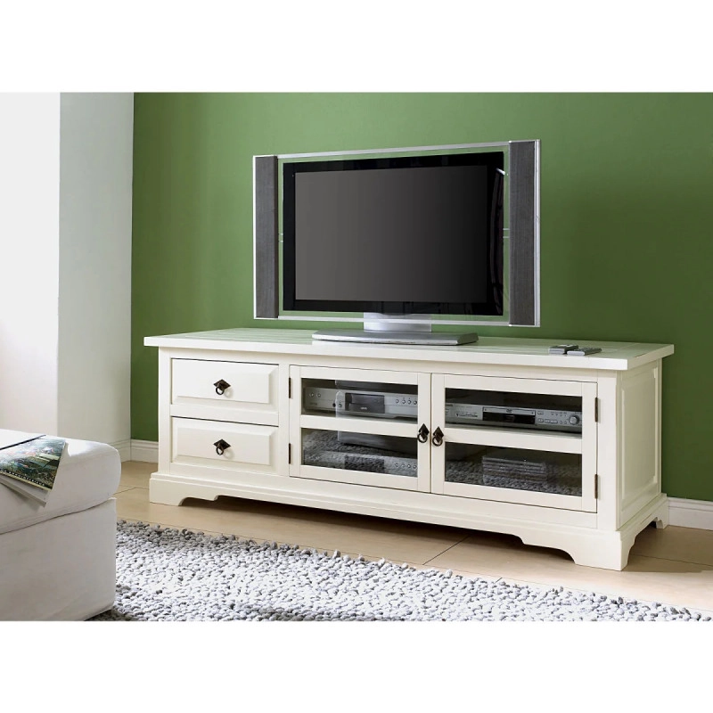 Masivní TV stolek Catana, vyrobený z kvalitní borovicového dřeva a dokončený odolným bílým lakem, dodá vašemu obývacímu pokoji eleganci a funkčnost. Jeho rozměry 160×60×57 cm nabízejí dostatek prostoru pro vaši televizi a další multimediální zařízení.