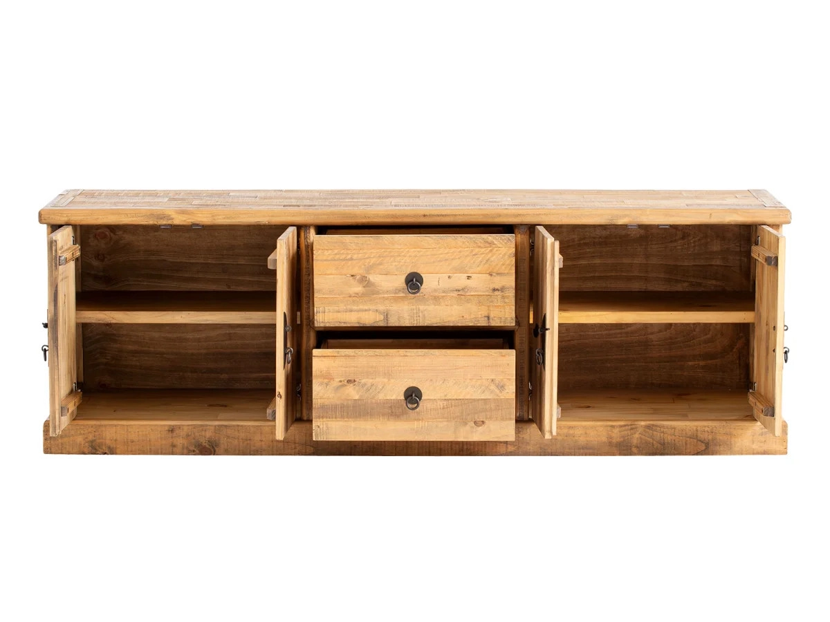 Užijte si kombinaci klasiky a robustní elegance s masivním TV stolkem Laredo, vyrobeným z kvalitní borovice a dokončeným lakovanou povrchovou úpravou v přírodní barvě. Tento široký stolek (190 cm × 50 cm × 62 cm) poskytuje dostatek prostoru pro vaši televizi a další multimediální zařízení, zatímco přírodní vzhled dřeva vnese do vašeho obývacího pokoje teplou a přívětivou atmosféru.