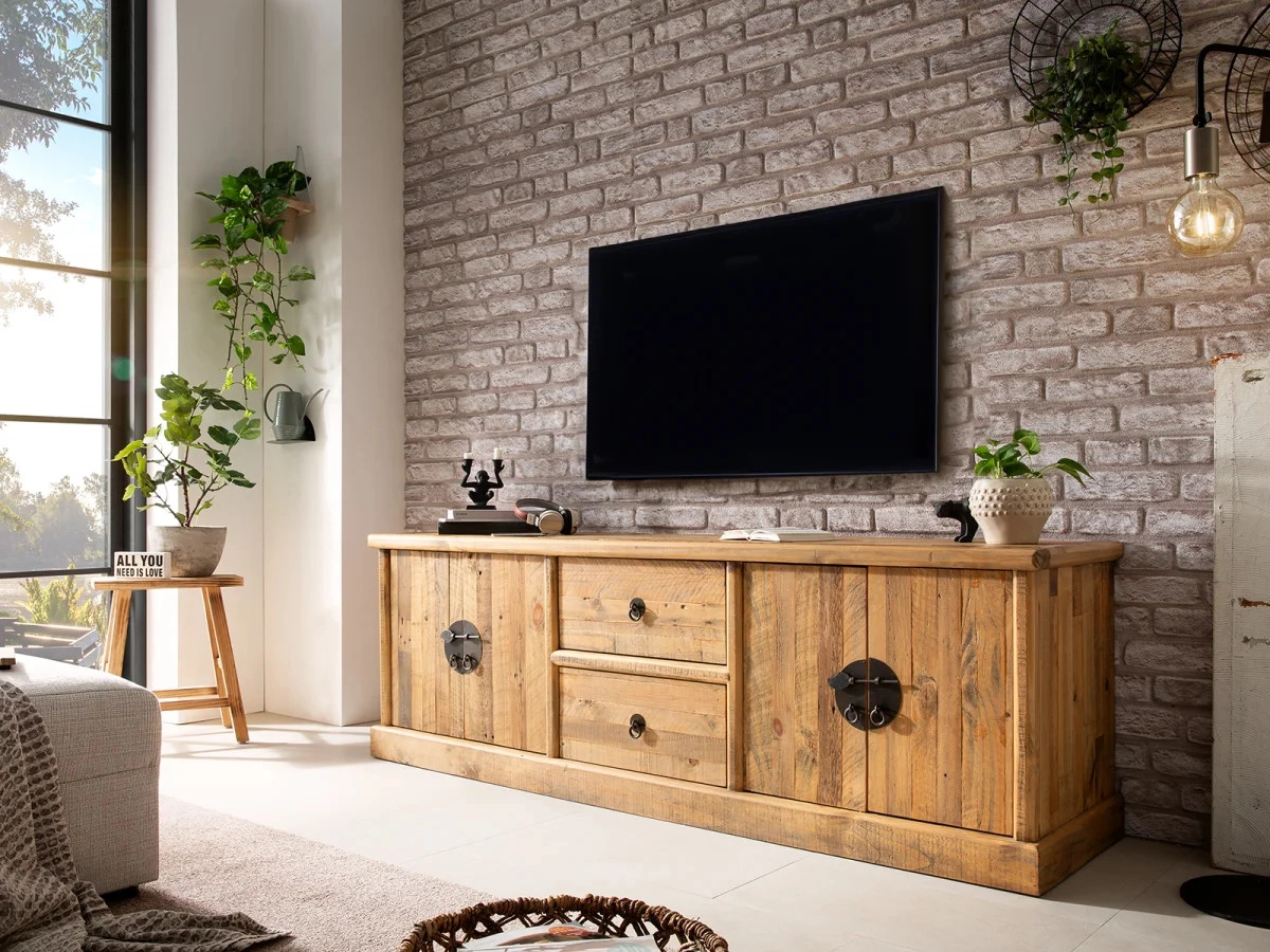 Masivní TV stolek Laredo z borovice je ideálním kouskem nábytku pro ty, kteří touží po spojení elegance a praktickosti ve svém obývacím pokoji. Tento stolek, vyrobený z kvalitní borovice, přináší do vašeho interiéru přírodní krásu a teplý nádech. S lakovaným povrchem je nejen odolný vůči poškrábání, ale také snadno udržovatelný, což oceníte při každodenním používání. Jeho rozměry 190 cm na délku, 50 cm na šířku a 62 cm na výšku z něj činí perfektní volbu pro umístění televizoru a dalších multimediálních zařízení, zatímco jeho přírodní barva harmonicky zapadne do jakéhokoliv stylu, ať už preferujete skandinávský minimalismus, rustikální pohodu nebo moderní design.