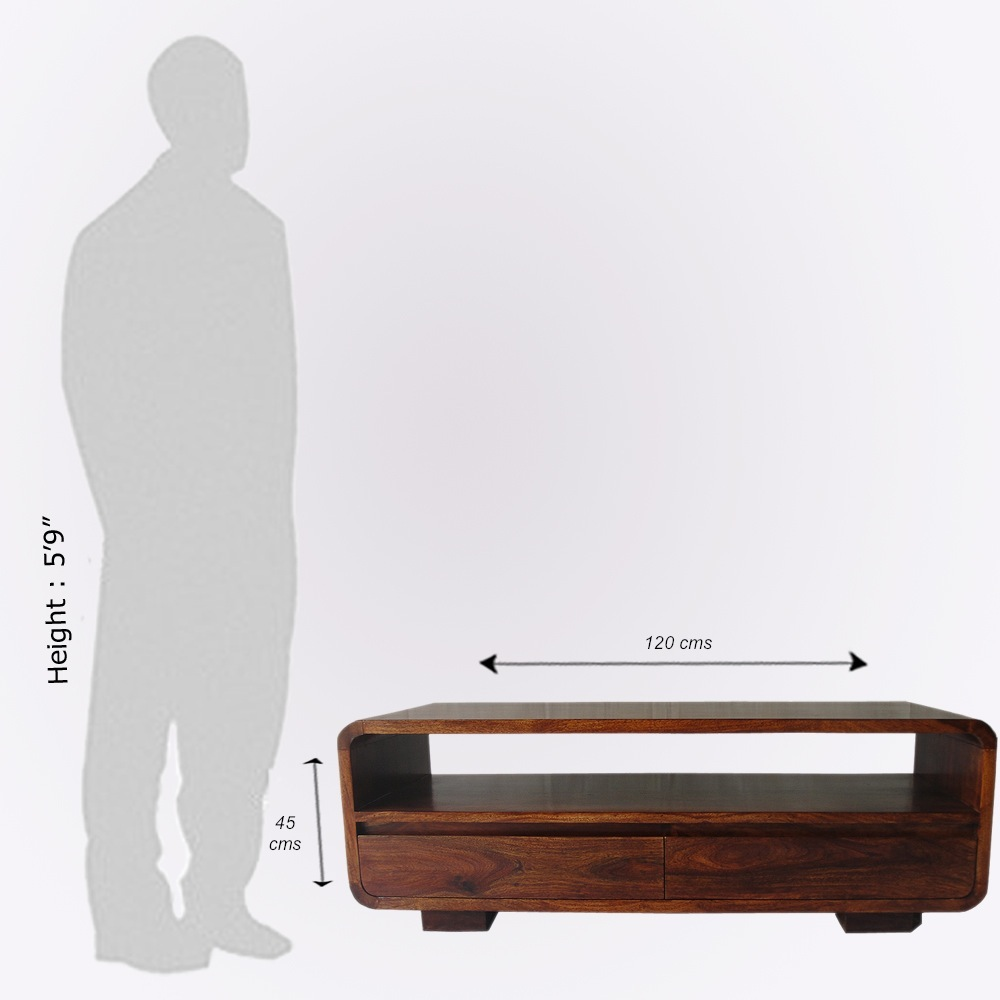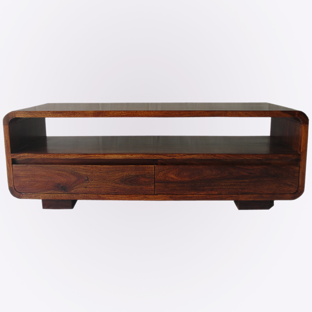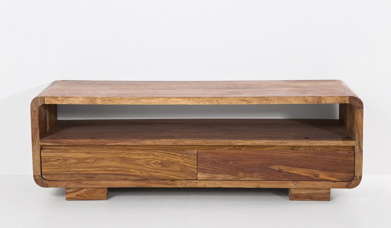 Ein einzigartiger massiver TV-Tisch mit sanften, geschwungenen Linien wird die Atmosphäre Ihres Wohnzimmers perfekt erfrischen! Diese Ausführung ist das Highlight des modernen Innendesigns und gehört zu den beliebtesten Elementen. Zwei Schubladen sorgen für ausreichend Stauraum für Ihre Utensilien. Das Holz, aus dem das Produkt gefertigt ist, gehört zu den hochwertigsten Arten der Welt. Es handelt sich daher um eine sehr wertvolle und praktische Lösung für Ihr Zuhause. Der unschlagbare Preis ist das Sahnehäubchen obendrauf!