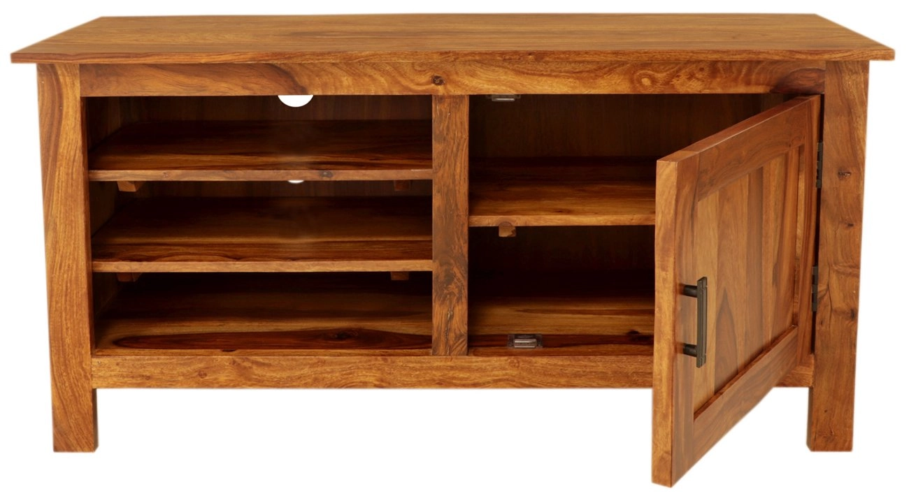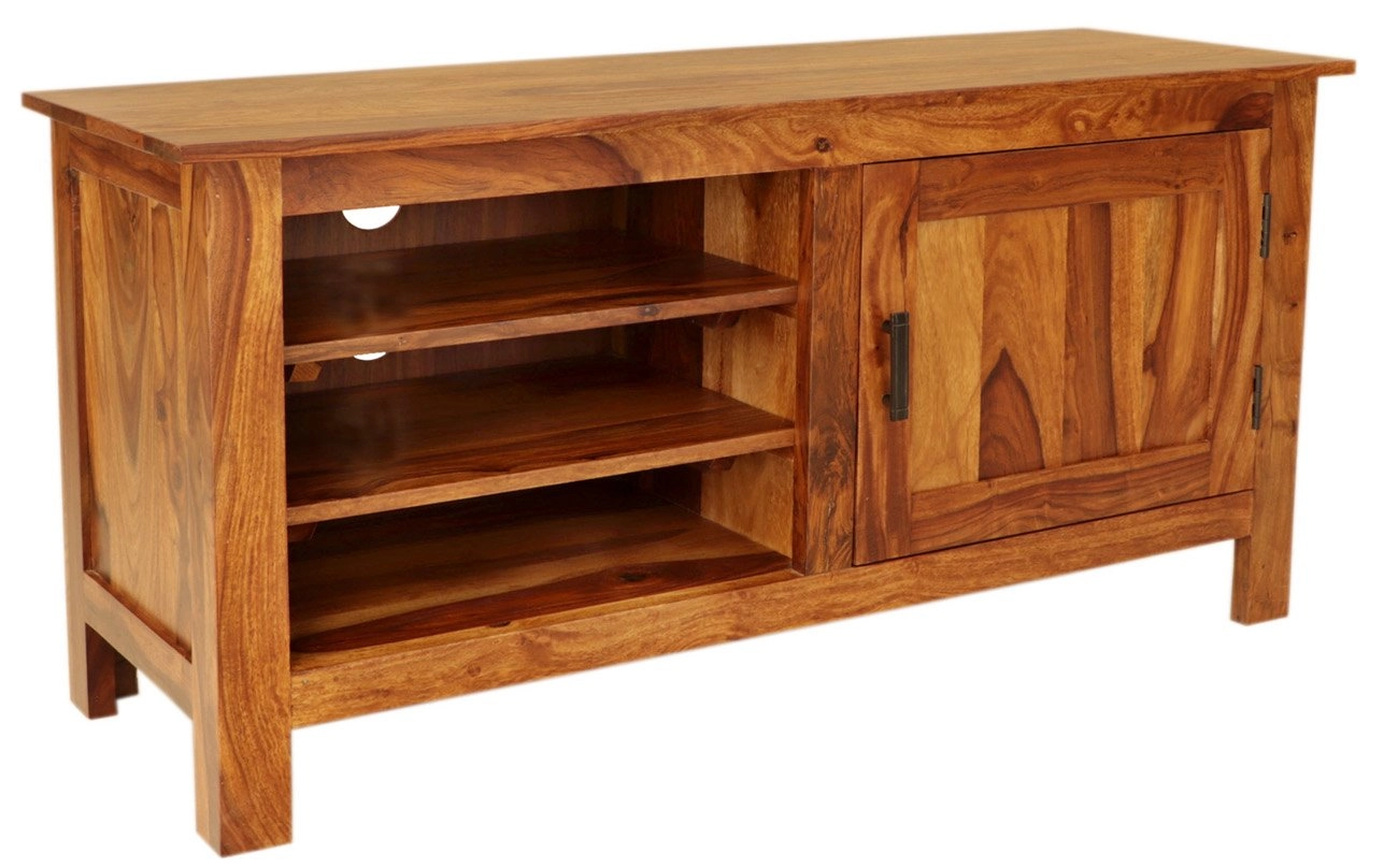 Díky praktickému designu obsahuje jedna skříňka skrytou za dvířky a polici, které nabízí dostatek úložného prostoru pro vaše potřeby – od DVD přehrávačů po herní konzole a televizní příslušenství. Masivní nábytek, jako tento TV stolek, přináší nejen robustnost a trvanlivost, ale také přirozenou krásu dřeva do vašeho domova, což tvoří dokonalou harmonii mezi uživatelským komfortem a estetickým přínosem.
