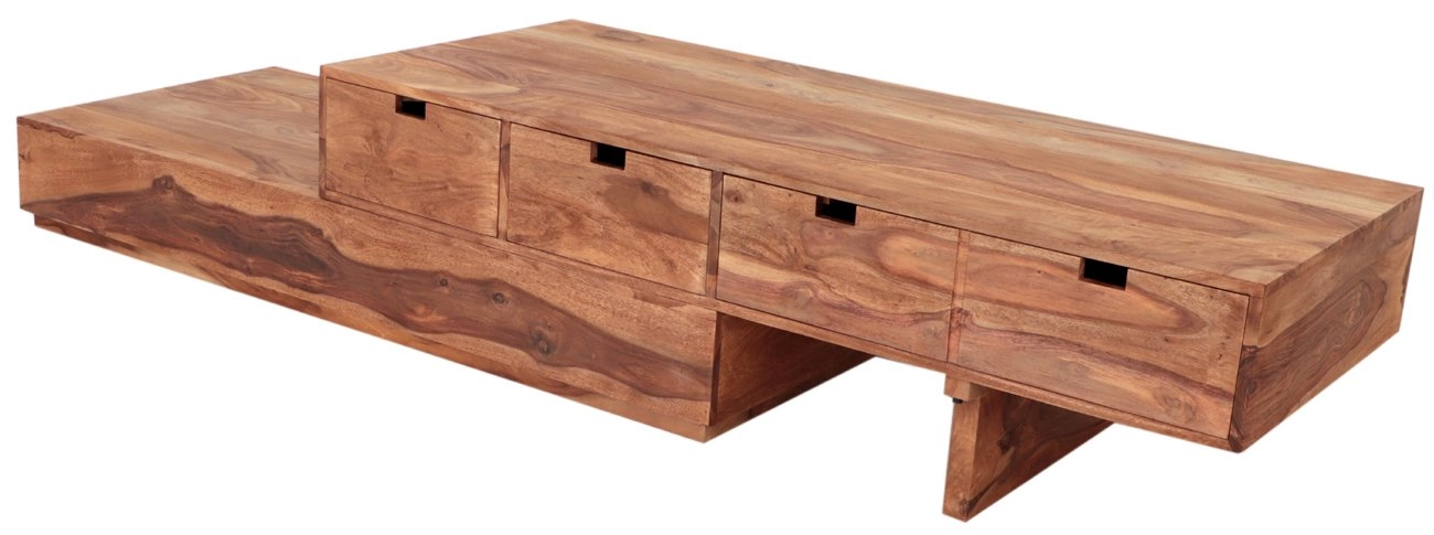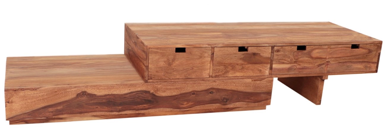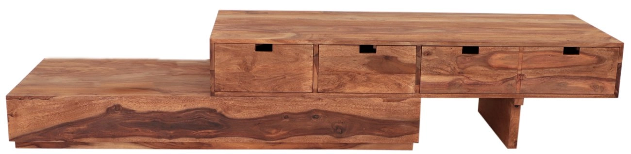 Tento masivní TV stolek nejenže poskytuje dostatek prostoru pro vaše televizní zařízení, ale také disponuje úložným prostorem, který je neocenitelný. Na pravé straně najdete dva menší šuplíky velikosti 31x52x13 cm a jeden větší dvojitý šuplík o rozměrech 62x52x13 cm. Horní a spodní část stolku je 145 cm široká, ale díky možnosti rozšíření jej můžete upravit na šířku až 260 cm, což činí tento stolek velmi flexibilním dle vašich potřeb.