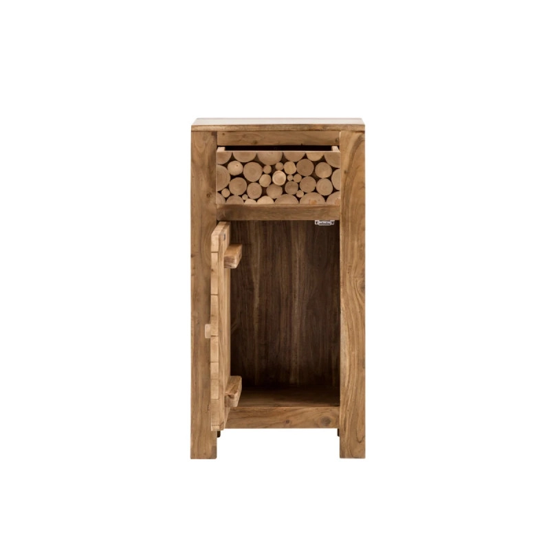 Masivní sada koupelnového nábytku Katha z akáciového dřeva je dokonalým spojením elegance a funkčnosti, které vnese do vaší koupelny přírodní atmosféru. Tato sada, vyrobená z vysoce kvalitního akáciového dřeva, se pyšní lakovaným povrchem v přirozené barvě, který zdůrazňuje unikátní strukturu dřeva a jeho teplé tóny. Akácie je známá svou odolností a dlouhou životností, což znamená, že tento nábytek bude vaším společníkem po mnoho let. Design s jemnými liniemi a harmonickými tvary dokonale zapadne do moderního interiéru, ať už máte koupelnu zařízenou v minimalistickém, skandinávském nebo rustikálním stylu.