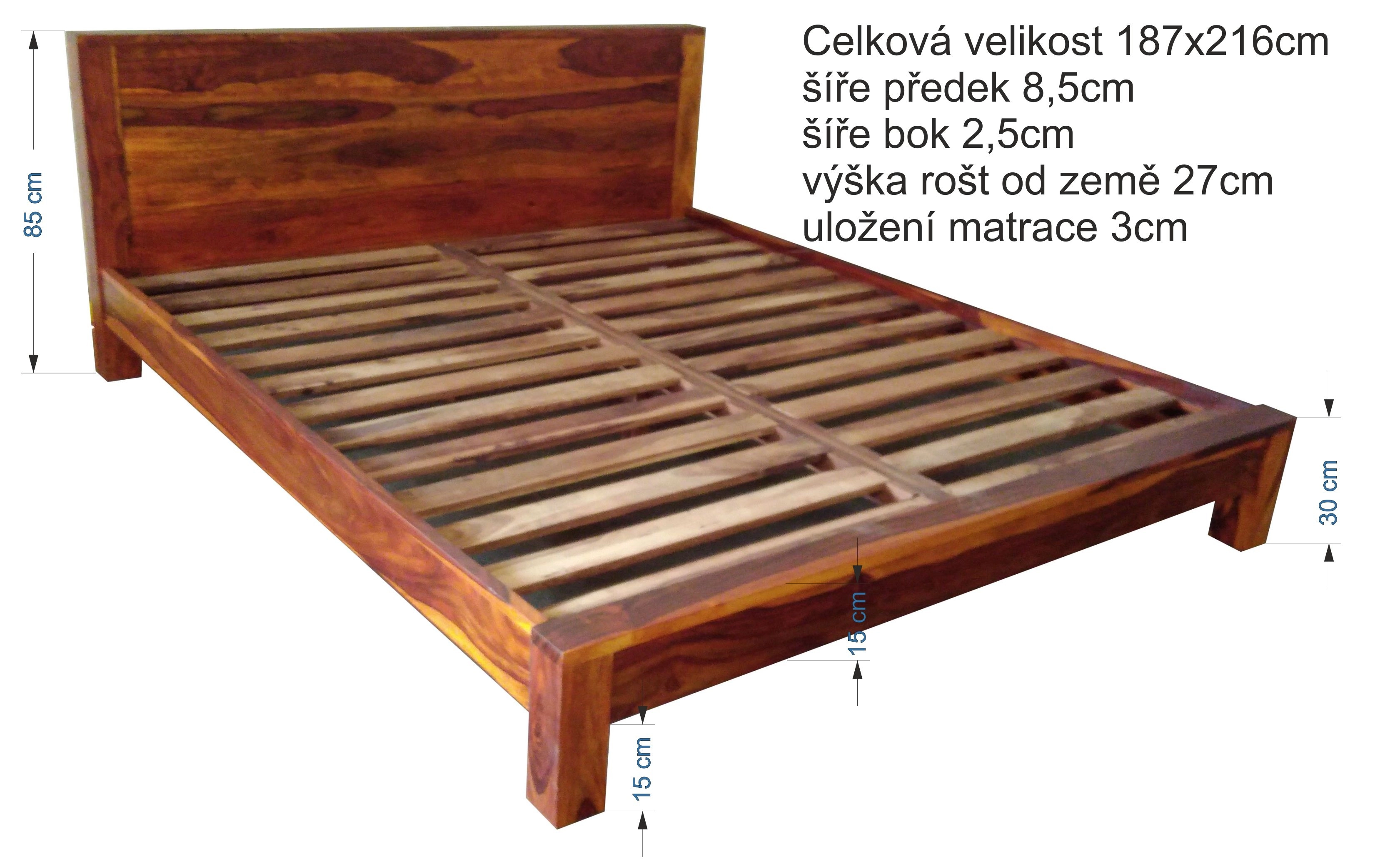 Masivní postel 180x200 z dřeva palisandr z kolekce KALI je dokonalým příkladem spojení elegance a funkčnosti. Tato postel, původem z Indie, je vyrobená z vysoce kvalitního dřeva palisandr, které je známé svou pevností a krásnou strukturou. Díky své rozměrnosti 180x200 cm je ideální pro ty, kteří preferují prostorný odpočinek. Celkové rozměry postele činí 186 cm na šířku, 216 cm na hloubku a výška dosahuje 85 cm u čela a 35 cm u noh.