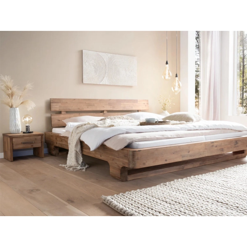 Masivní postel Madras, vyrobená z kartáčovaného akátového dřeva v přírodní hnědé barvě, dodá vaší ložnici pocit tepla a pohodlí. Tento robustní kousek nábytku o rozměrech 140x200 cm nabízí kvalitní a pevný základ pro vaše odpočinkové chvíle.