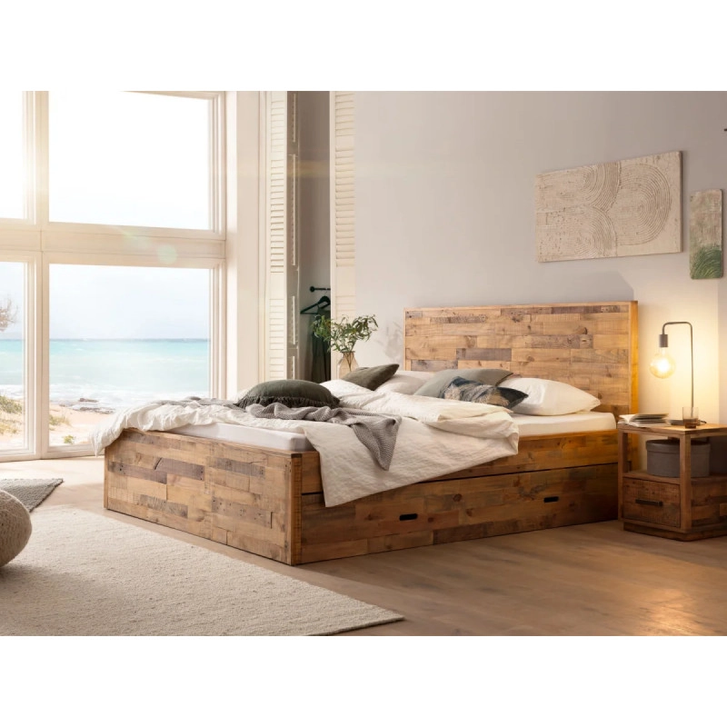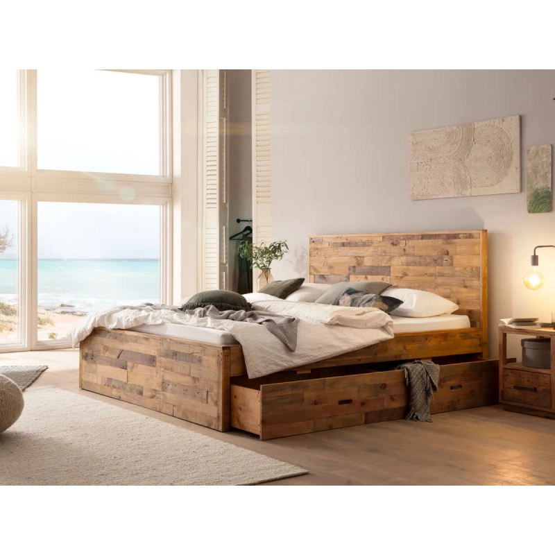Užijte si pohodlí a eleganci s masivní postelí Mayari o rozměrech 180x200 cm, vyrobenou z kvalitní borovice a ošetřenou ochranným lakem pro dlouhou životnost. Tento kousek nejen skvěle doplní vaši ložnici, ale díky praktickému úložnému prostoru udrží vaše prostředí organizované a útulné.