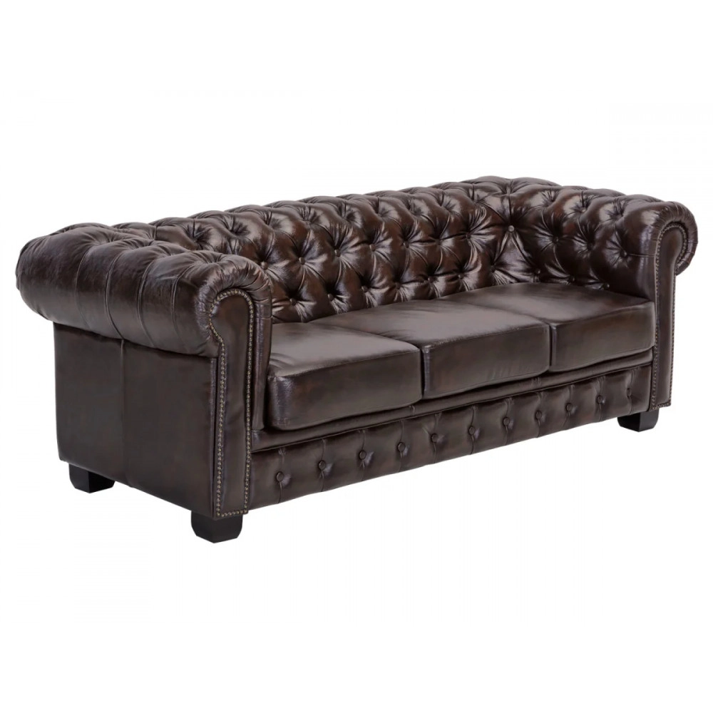 Objevte luxus a pohodlí s naší masivní sedací soupravou Chesterfield, vyrobenou z prvotřídní hnědé pravé kůže. Tento ikonický kousek s bohatě prošívanými detaily a robustní konstrukcí dodá vašemu obývacímu pokoji neopakovatelný styl a eleganci.