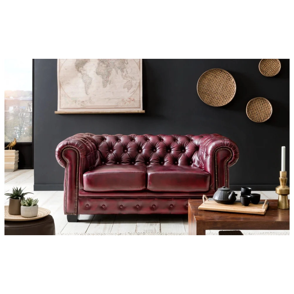 Masivní sedací souprava Chesterfield z pravé kůže v okouzlující červené barvě je nejen kus nábytku, ale i stylový prvek, který vnese do vašeho interiéru nádech elegance a luxusu. Její typické prošívání a zakřivené linie evokují klasickou britskou estetiku, která se skvěle hodí jak do moderních, tak i tradičně zařízených prostor. Sedací souprava je navržena s důrazem na pohodlí a funkčnost, což ji činí ideálním místem pro relaxaci po náročném dni nebo pro příjemné setkání s přáteli. Červená barva dodává prostoru živost a energii, zatímco pravá kůže zajišťuje dlouhou životnost a snadnou údržbu, což oceníte při každodenním používání.